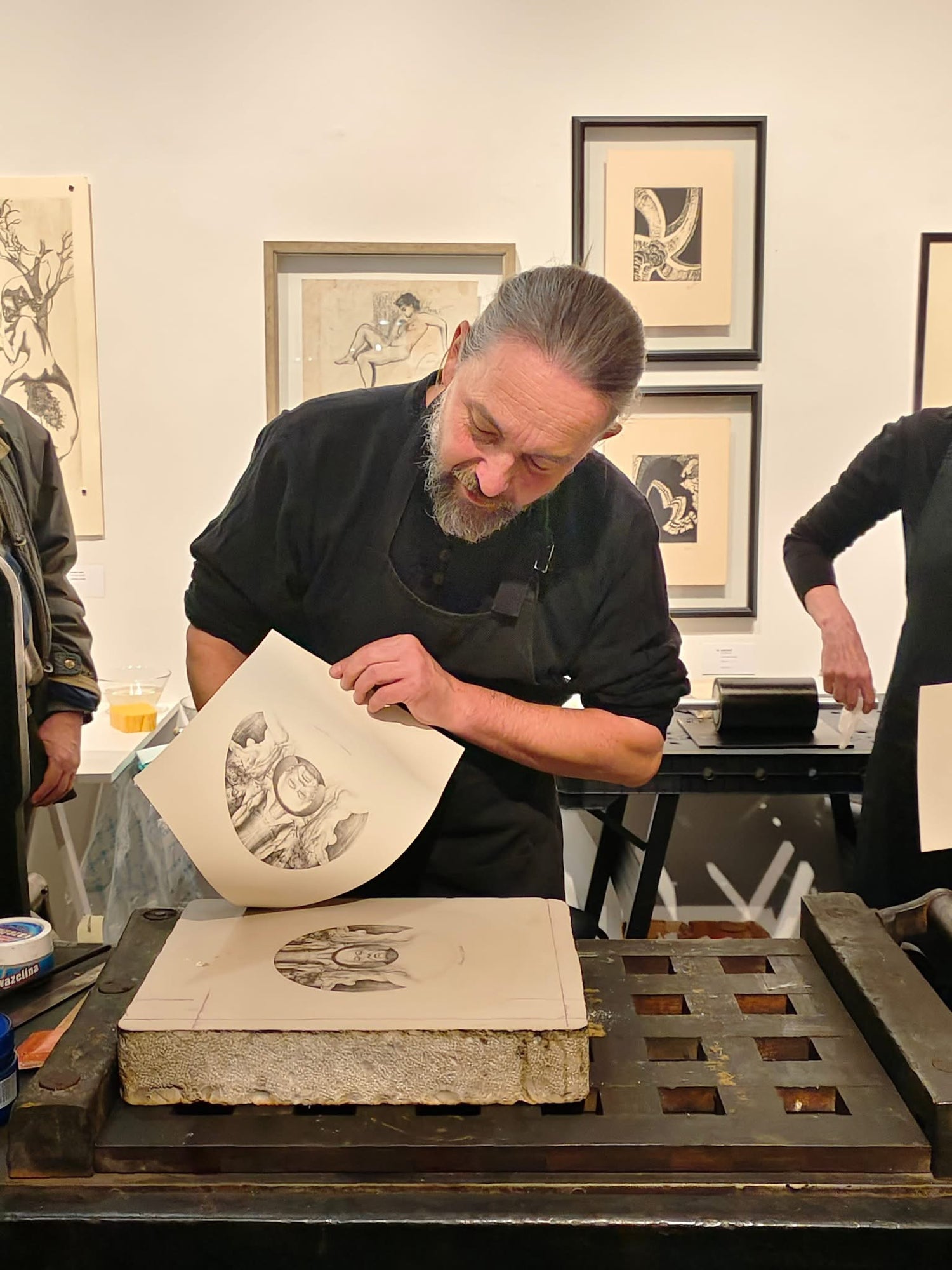 Součástí naší expozice bude také tiskařský lis pana Petra Korbeláře, který tiskne litografie už od roku 1993 a spolupracuje se stovkou předních českých umělců. Mezi ně patří, i v naší Galerii dobře známí autoři – Oldřich Kulhánek, Oldřich Jelen, Vladimír Suchánek, Marina Richter, Martin Raudenský, Jakub Špaňhel apod. Během naší výstavy budete mít jedinečnou příležitost prohlédnout si, jak litografie vzniká. V podvečer dne 25. 11. a 9. 12. společně vytiskneme limitované edice děl Veroniky Jelenové a Jiřího Slívy, která si u nás můžete přímo zakoupit a odnést s sebou domů a obdarovat sebe nebo své blízké tímto unikátním dárkem pod vánočním stromečkem.