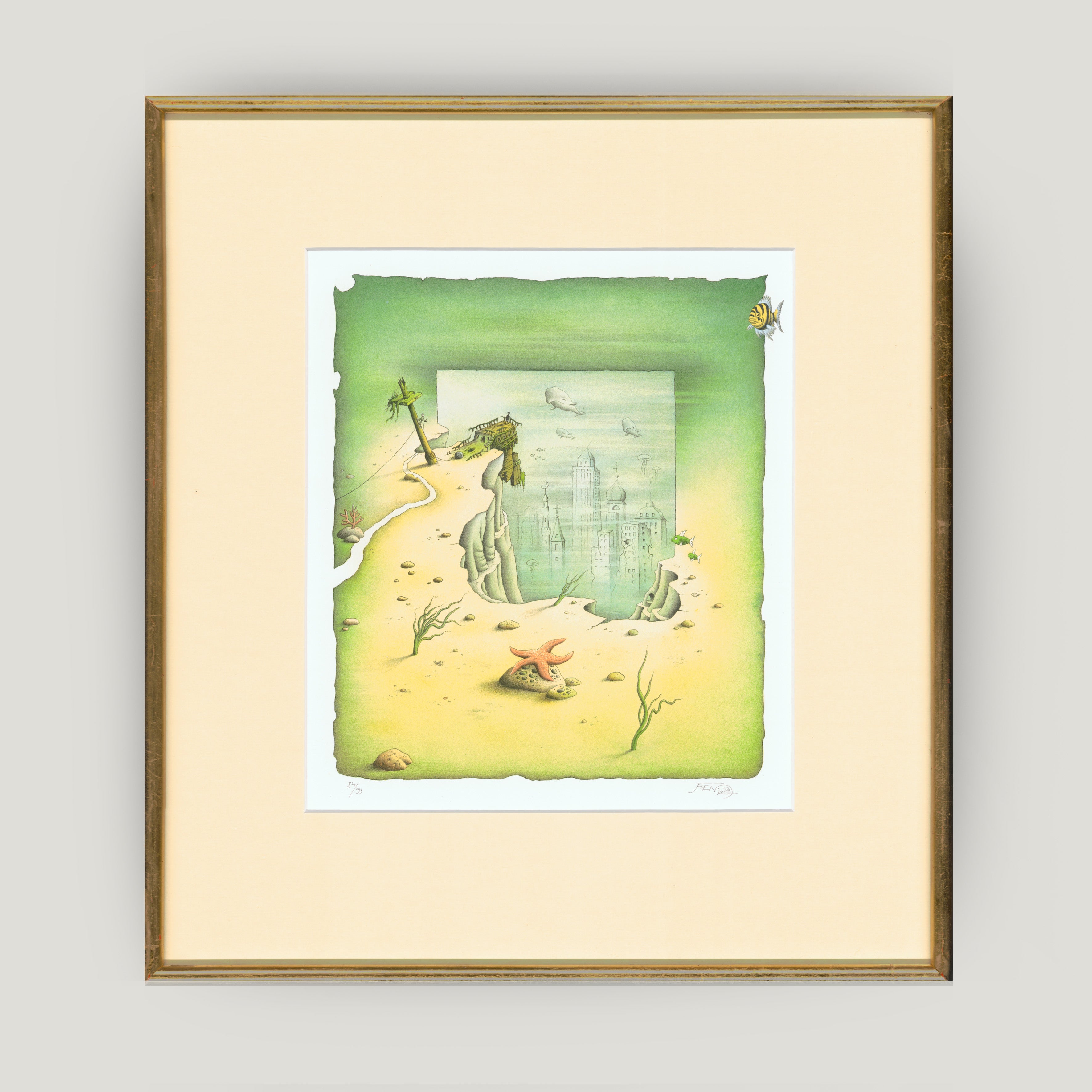 Litografie 84/93, rozměr s rámem 36,5x41,5 cm, signováno O. Jelen. Rámováno