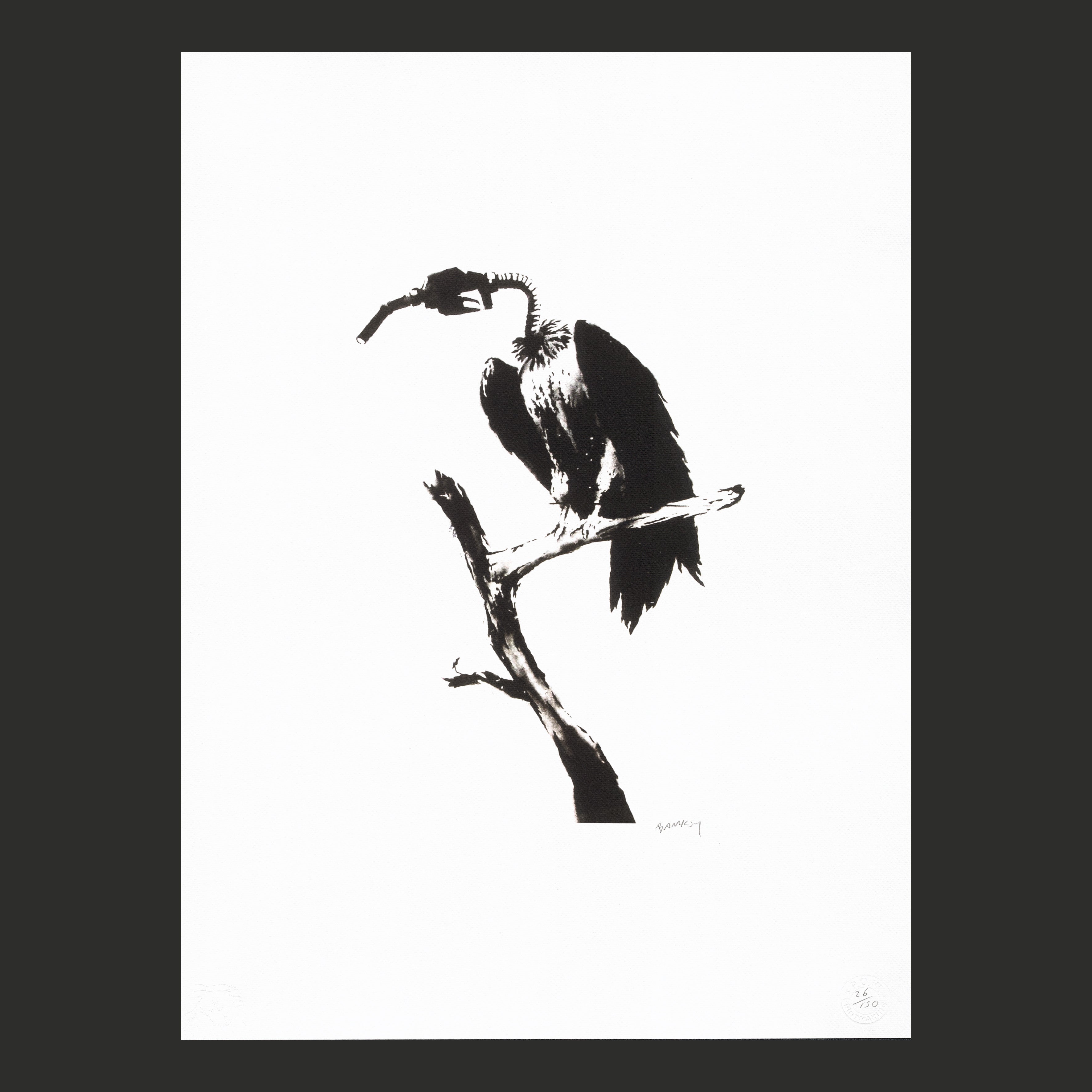 Grafický list, 50 x 70 cm. Číslováno, slepotisk P.O.W.-BANKSY, ruční papír Fabriano Cotton Privilege. Signováno vpravo dole BANKSY.