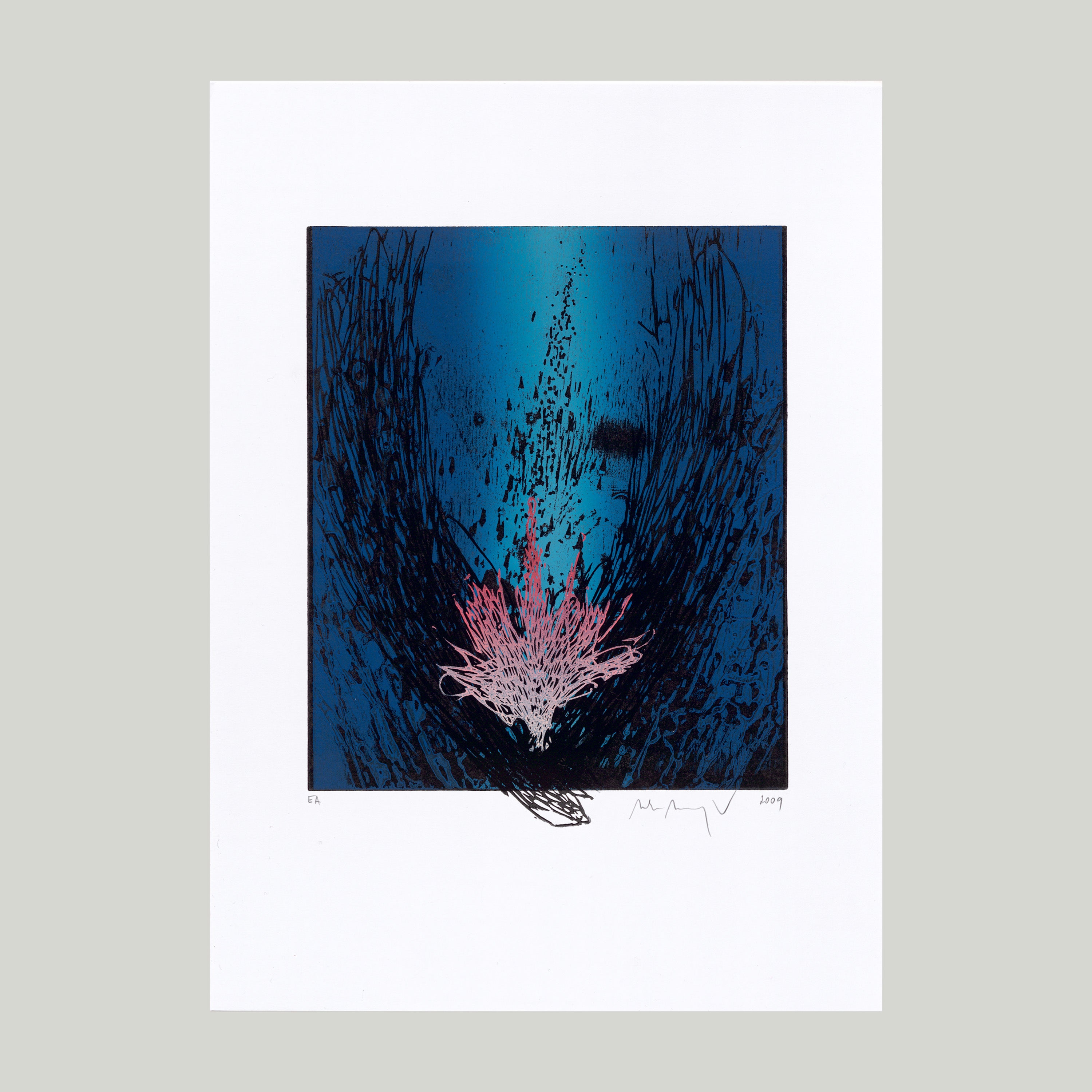 Barevný linoryt, 11x16 cm tisková plocha, grafický list 21x29,5 cm, číslováno EA, signováno M. Manojlín 2009