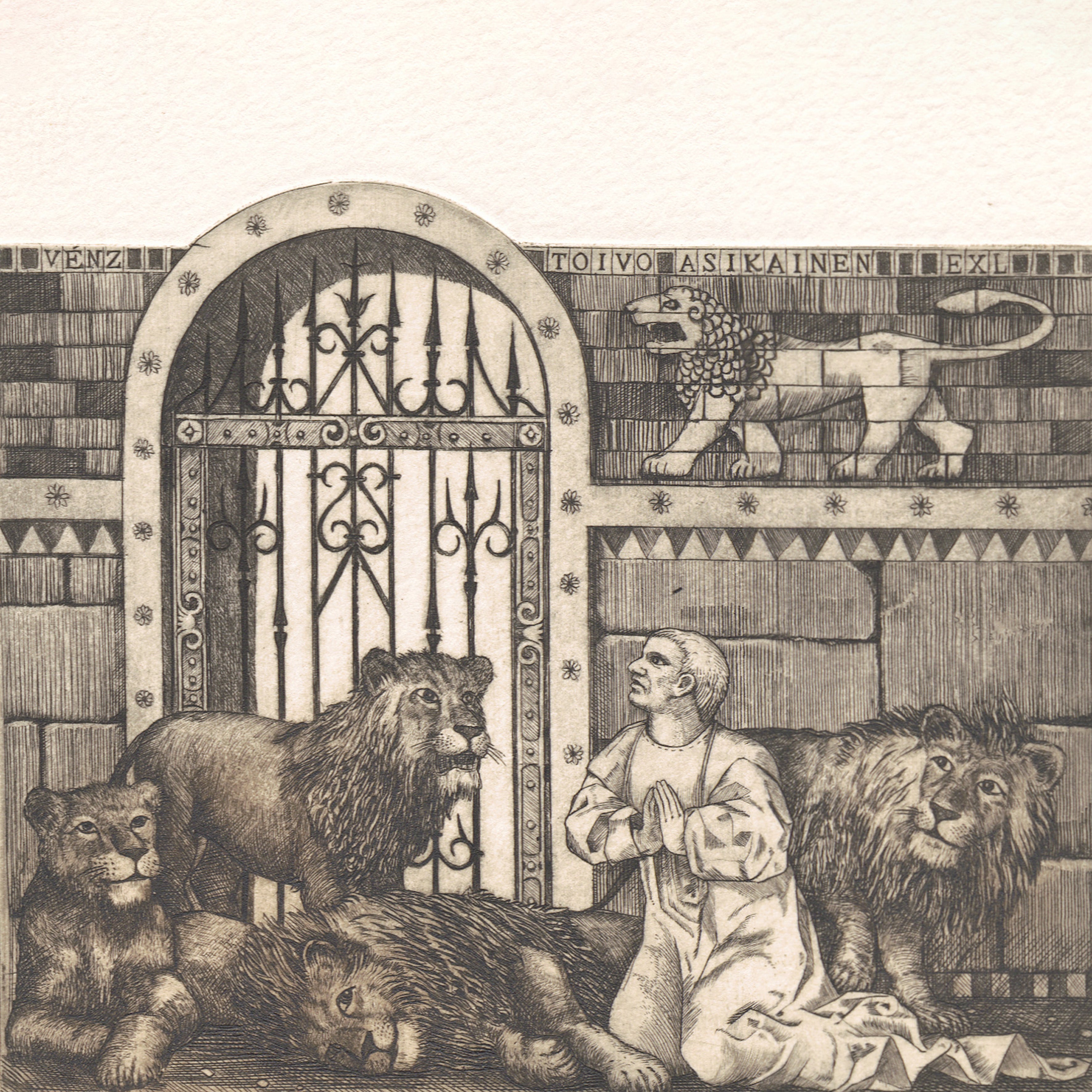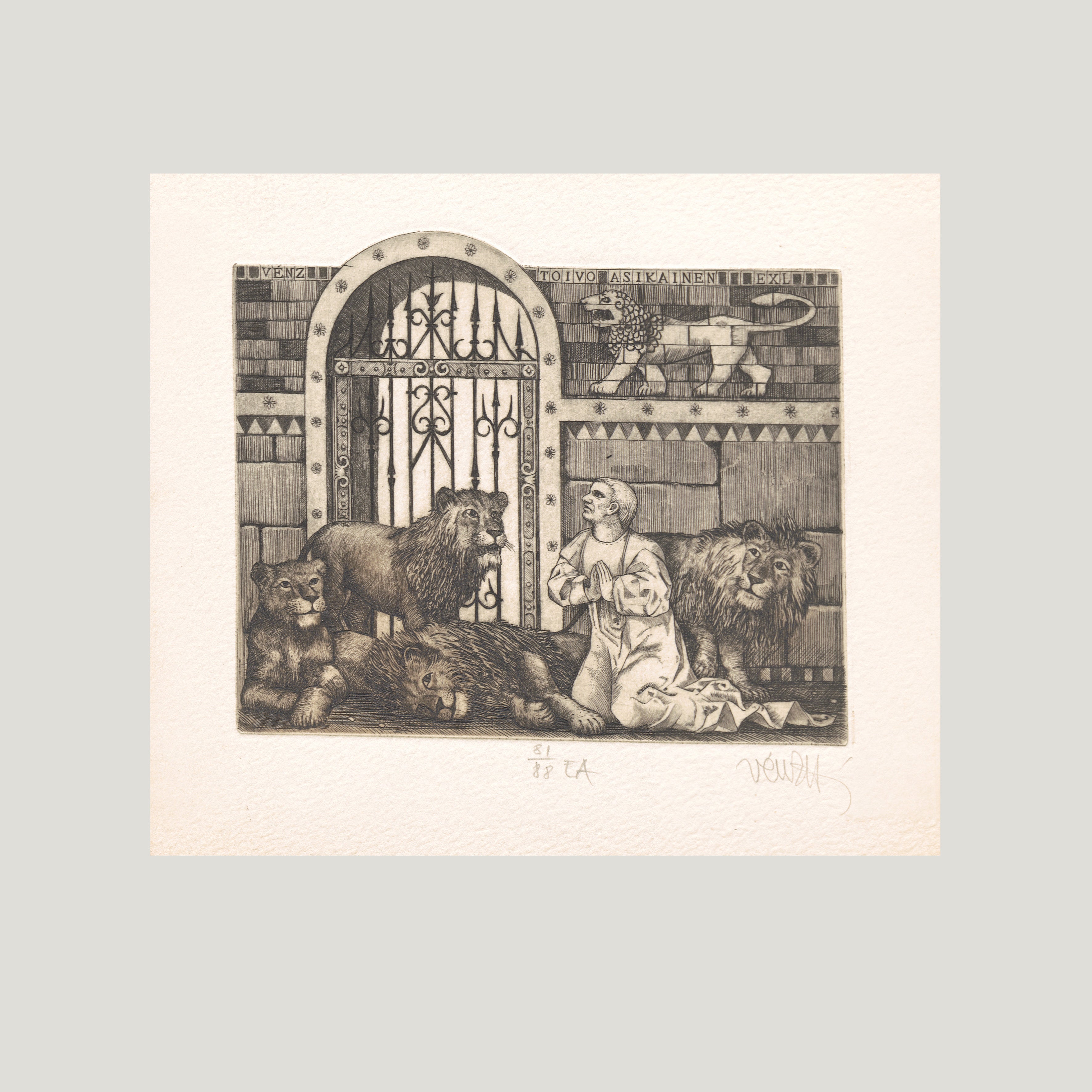 Mědiryt, lept 13,3x11 cm tisková plocha, 17,3x15,9 cm grafický list, číslováno 81/88 E.A., signováno Vén Zoltán. Volný grafický list - nerámováno