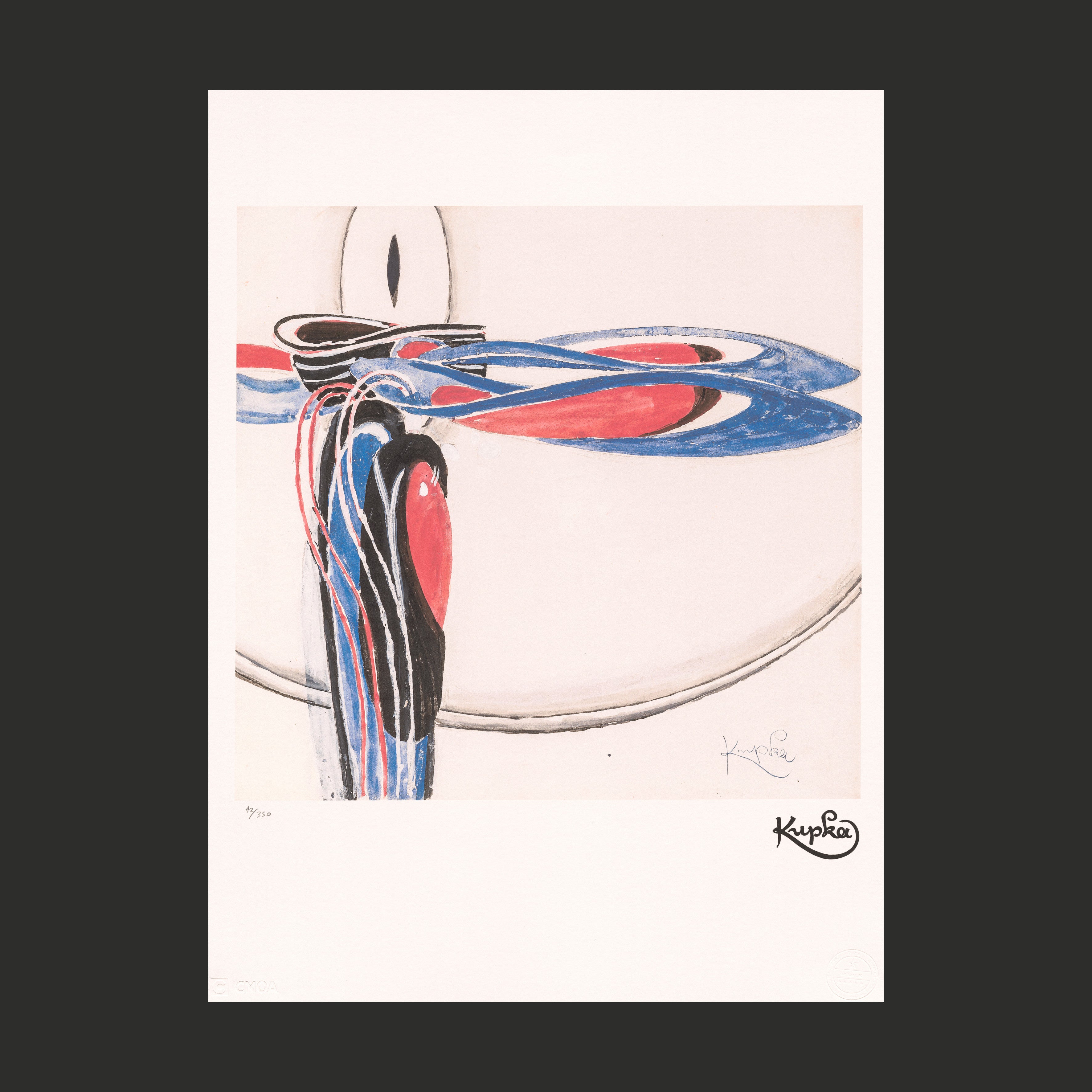 Certifikovaný grafický list, 50 x 70 cm. Číslováno 42/350. Certifikát, ruční papír Cotton Cream. Signováno vpravo dole Kupka. Slepotiskové razítko: CMOA MUSEUM, SPADEM PARIS. Licence Frank Kupka Atelier 7, Rue Lemaitre Puteaux - Seine France.
