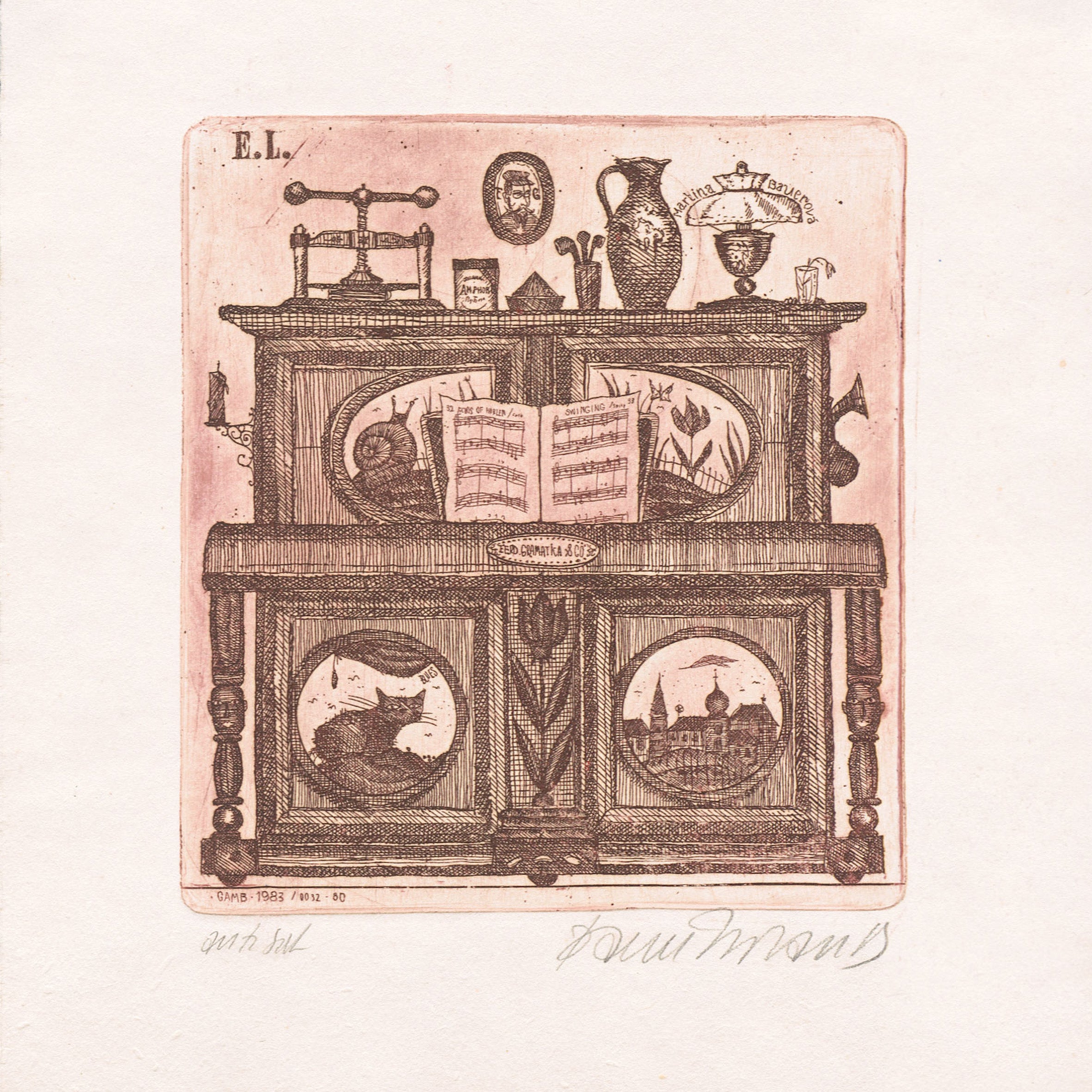 Lept 8,7x10 cm tisková plocha, 13,5x16,2 cm grafický list, at, signováno Milan Bauer