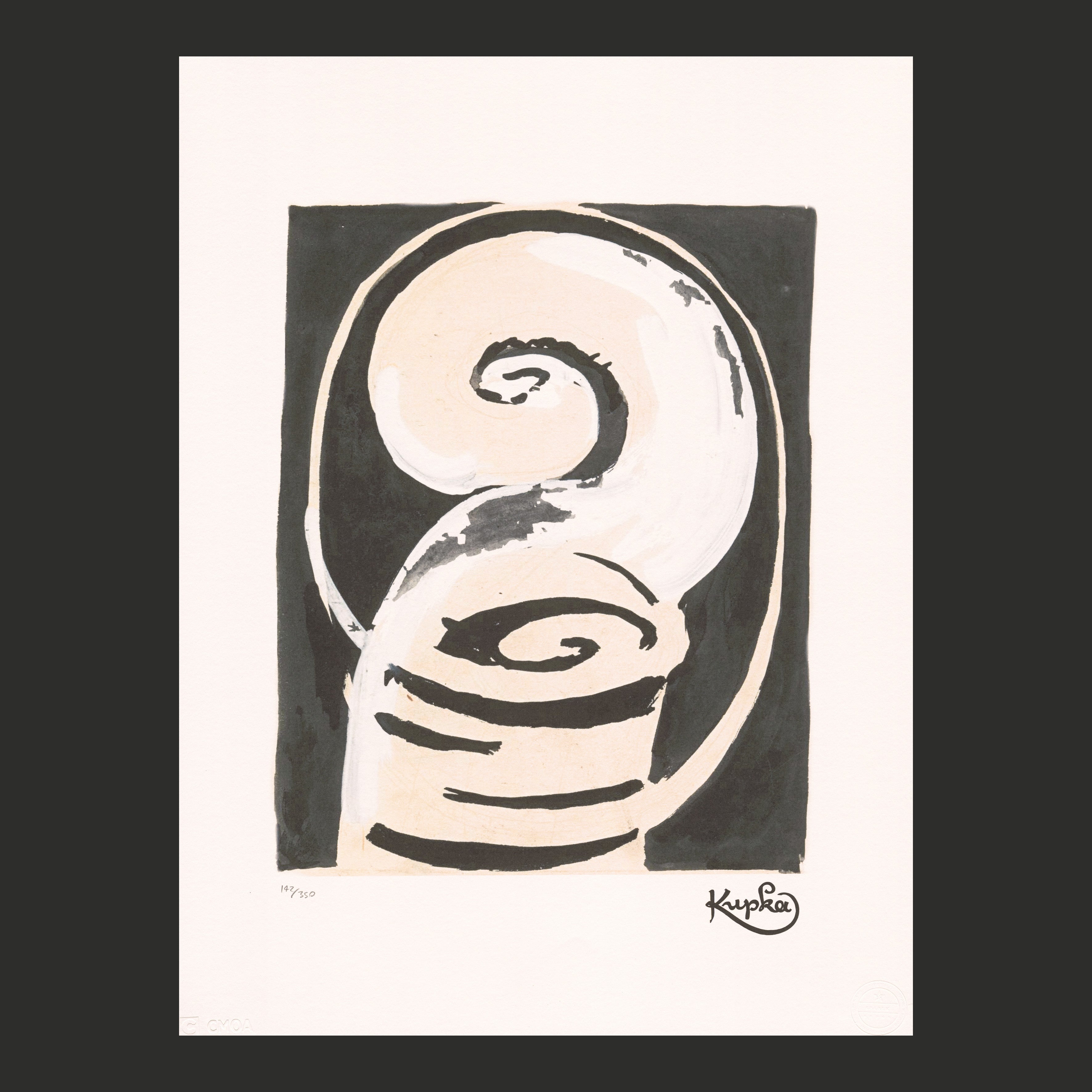 Certifikovaný grafický list, 50 x 70 cm. Číslováno 142/350. Certifikát, ruční papír Cotton Cream. Signováno vpravo dole Kupka. Slepotiskové razítko: CMOA MUSEUM, SPADEM PARIS. Licence Frank Kupka Atelier 7, Rue Lemaitre Puteaux - Seine France.