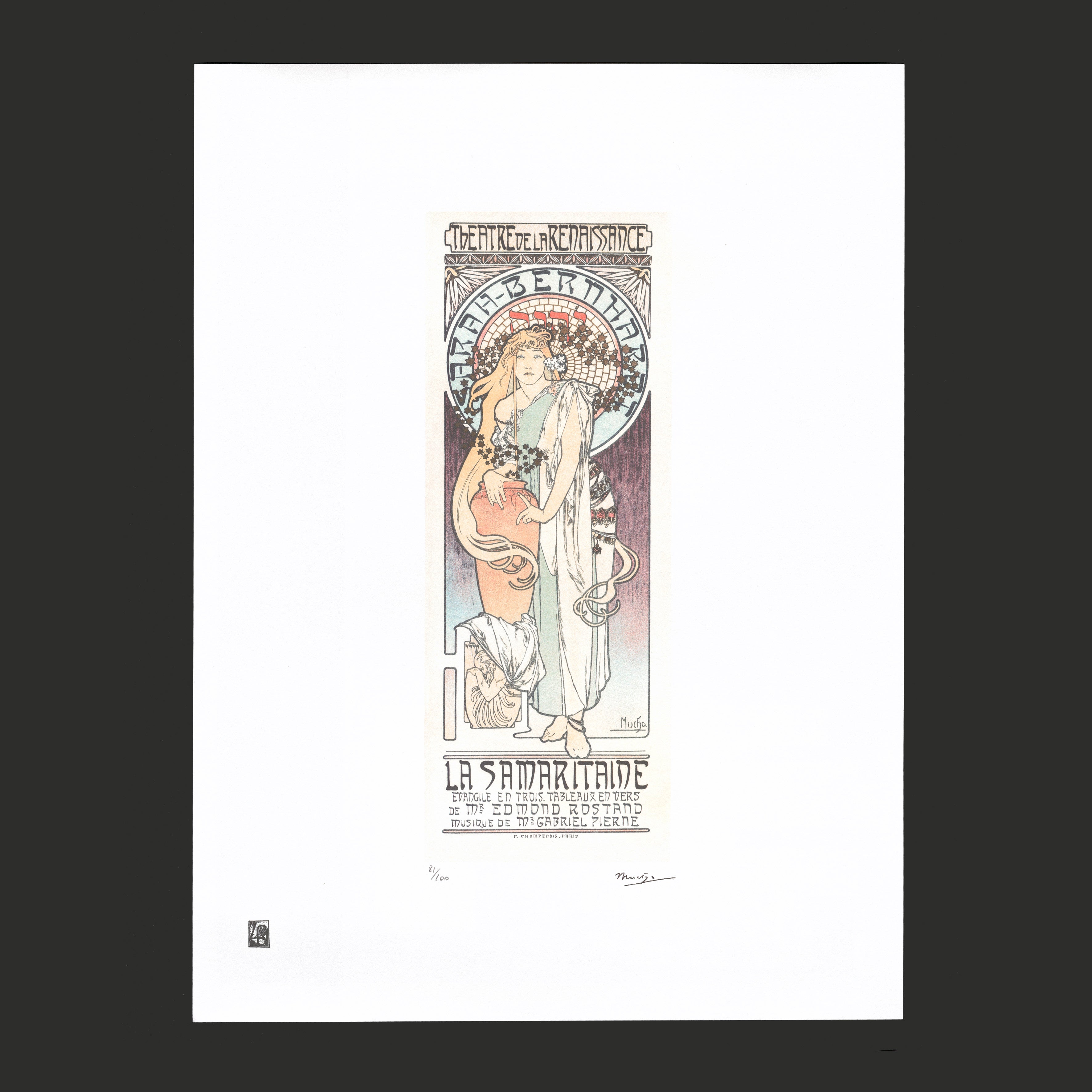 Certifikovaný grafický list, 50 x 70 cm. Číslováno 81/100. Certifikát, ruční papír. Signováno vpravo dole A. Mucha. LA PLUME Societe Anonyme - Paris