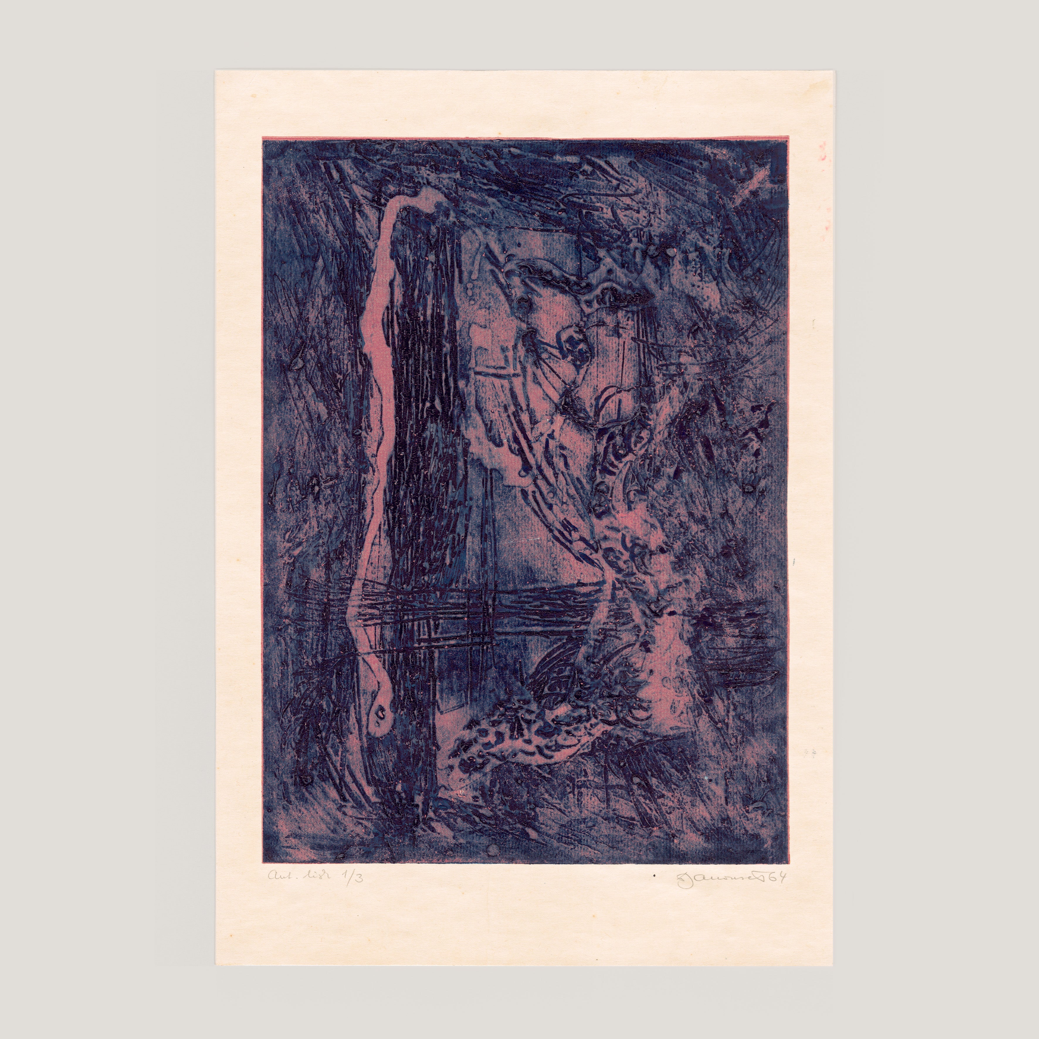 Kombinovaná technika. Tisková plocha 22,5x32 cm, grafický list 26,3x39,5 cm, signováno tužkou Dušan Janoušek, 1/3, volný list.