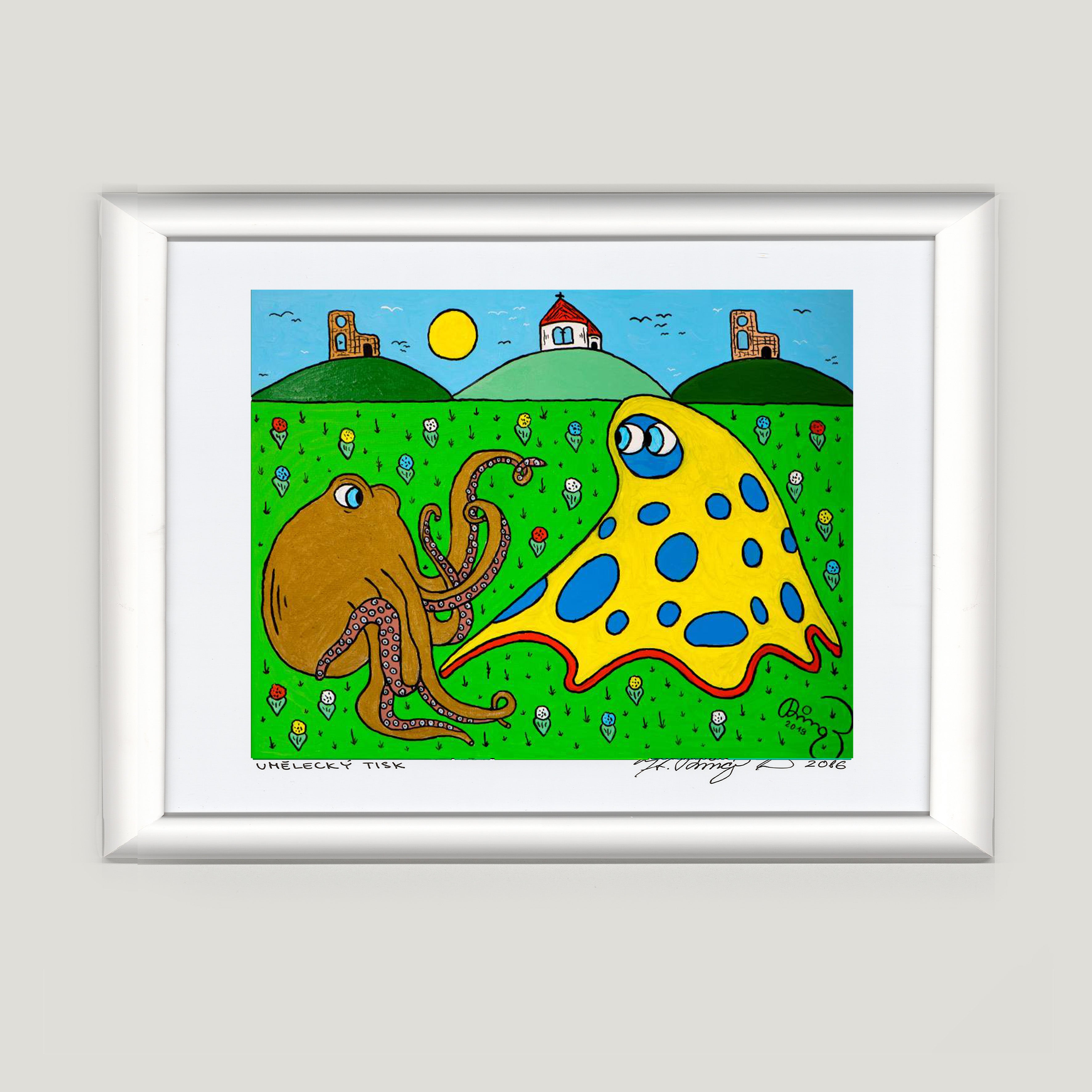 Umělecký tisk obrazu 34 x 40 cm, podepsaný autorem, cena včetně zasklení a rámu