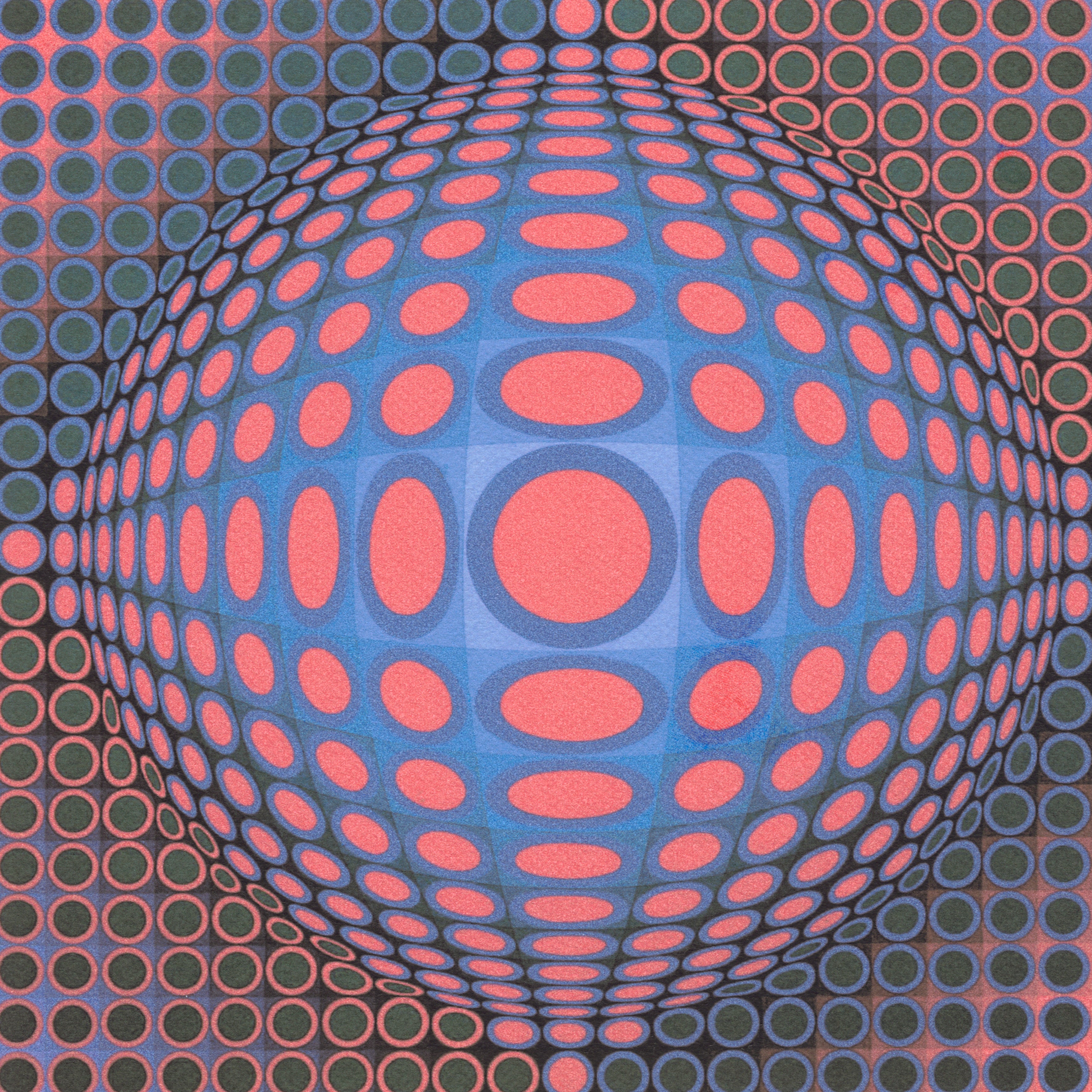 Victor Vasarely (1906–1997) byl maďarsko-francouzský malíř, grafik a sochař. Vyrůstal na Slonensku, ale většinu života prožil ve Francii. Navázal na geometrickou abstrakci Františka Kupky a Kazimira Maleviče a přetvořil ji do nového směru: op-artu neboli optického umění.