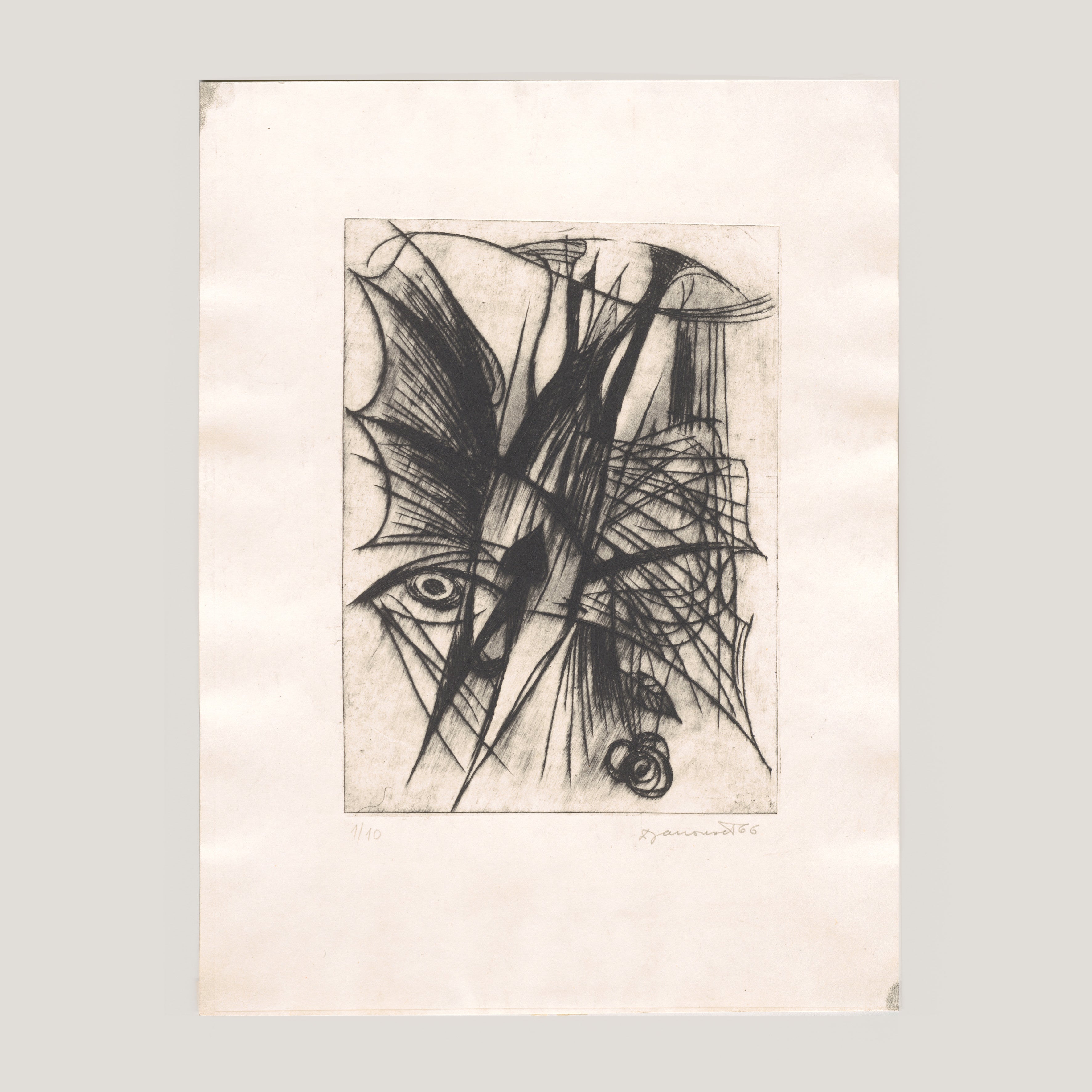 Suchá jehla. Tisková plocha 14,8x20,8 cm, grafický list 23,8x32,7 cm, 1/10, signováno tužkou Dušan Janoušek 66, volný list.