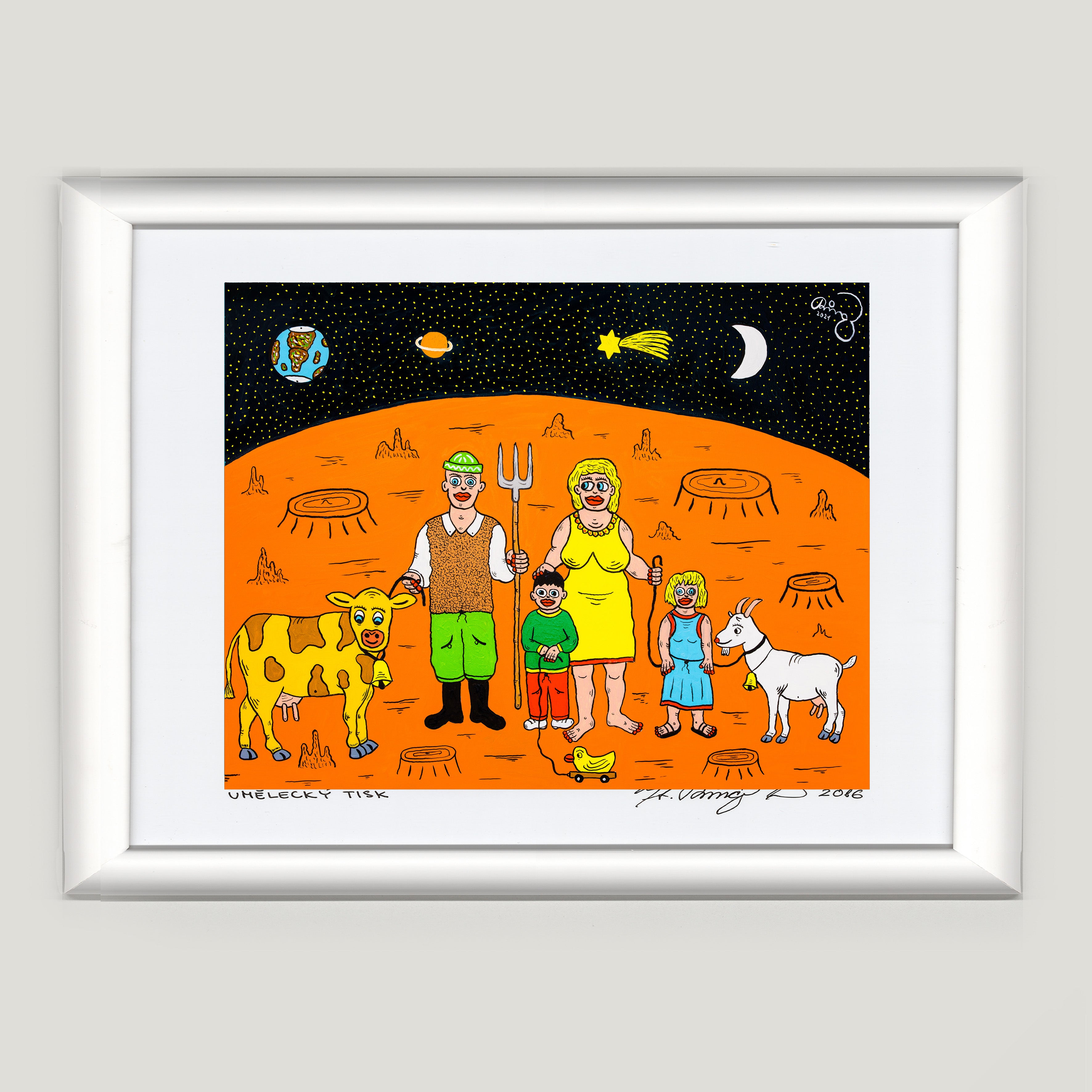 Umělecký tisk obrazu 39 x 34 cm, podepsaný autorem, cena včetně zasklení a rámu.