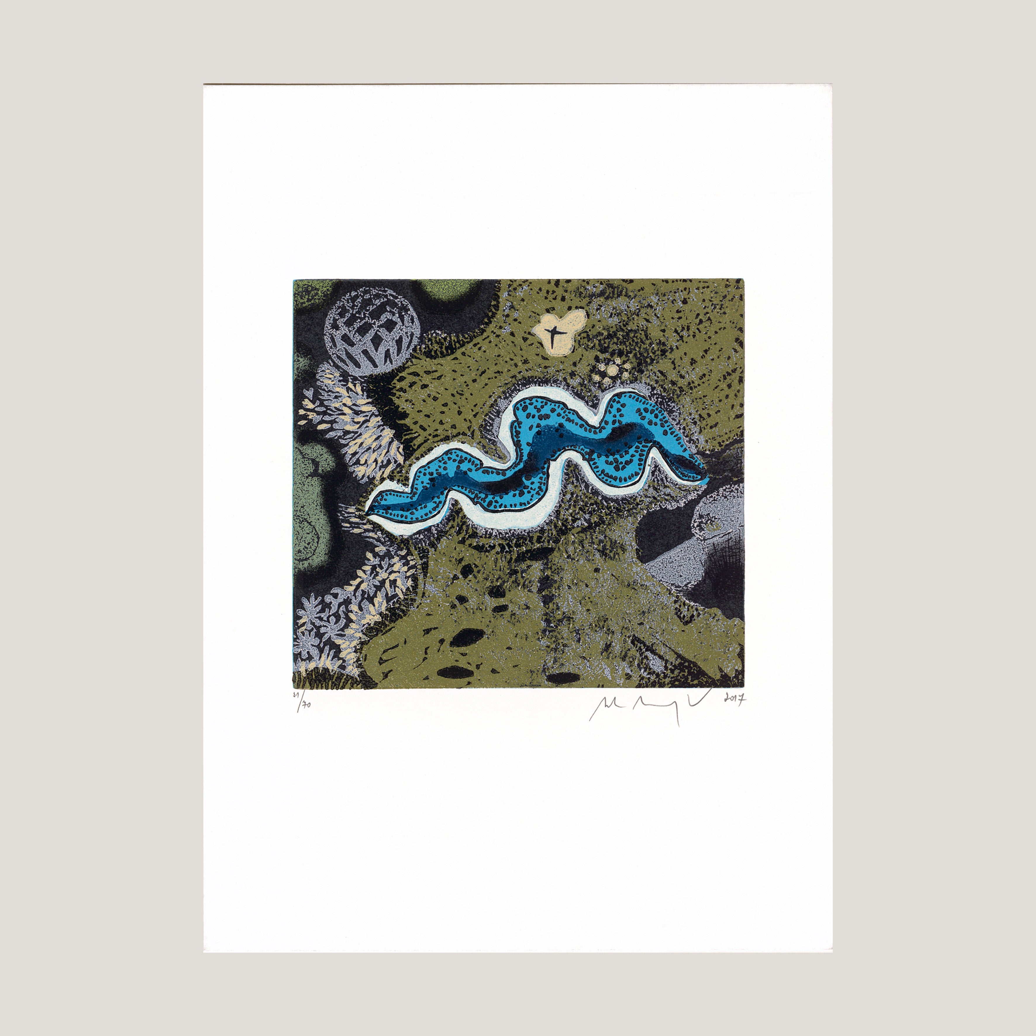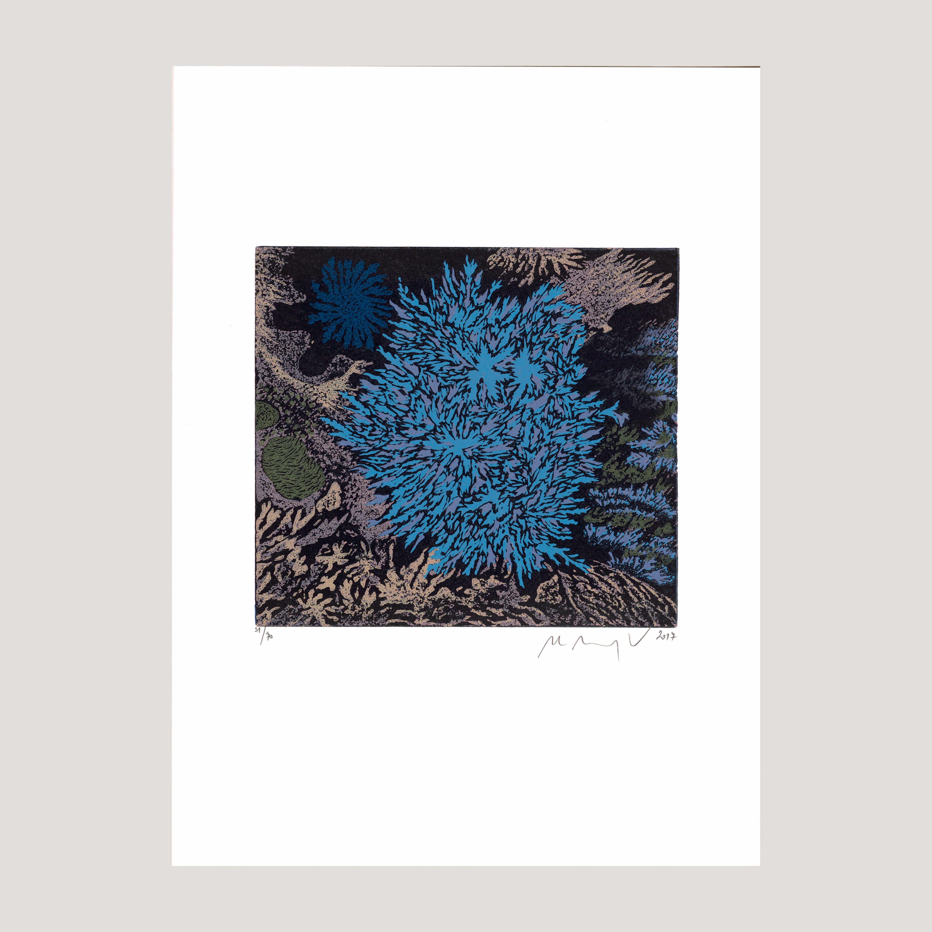 Soubor dvou grafických listů v originálních deskách. Barevný linoryt, tisková plocha 15×14 cm, grafický list 21×29,6 cm, číslováno 31/70, signováno M. Manojlín 2017