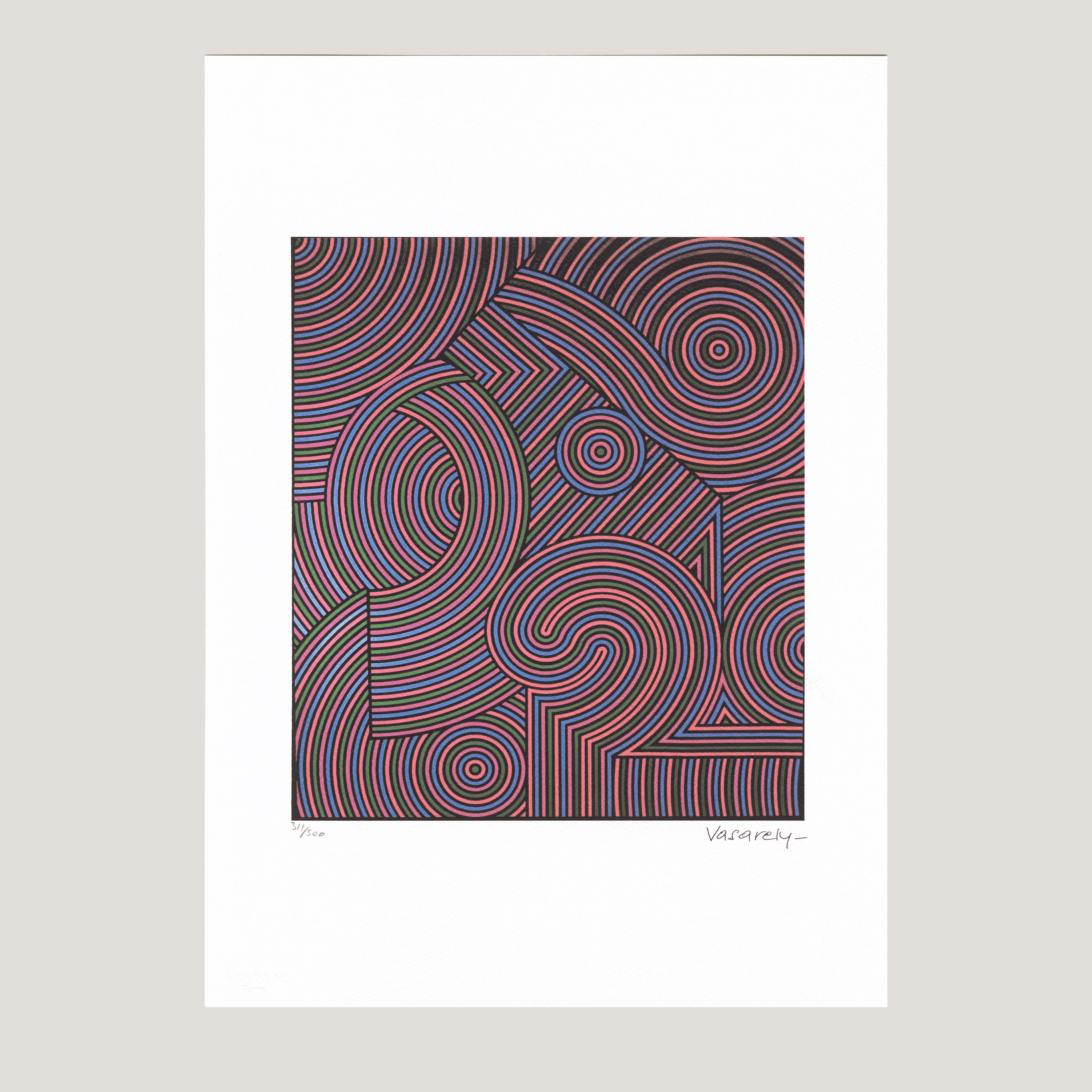 Grafický list 35x50 cm v limitovaném nákladu. Tisk č. 311/500. Slepotiskové razítko S.P.A.D.E.M. Volný list. Certifikát, ruční papír Arches France Infinity. Licence: Victor Vasarely Museum. Editor: S.P.A.D.E.M.