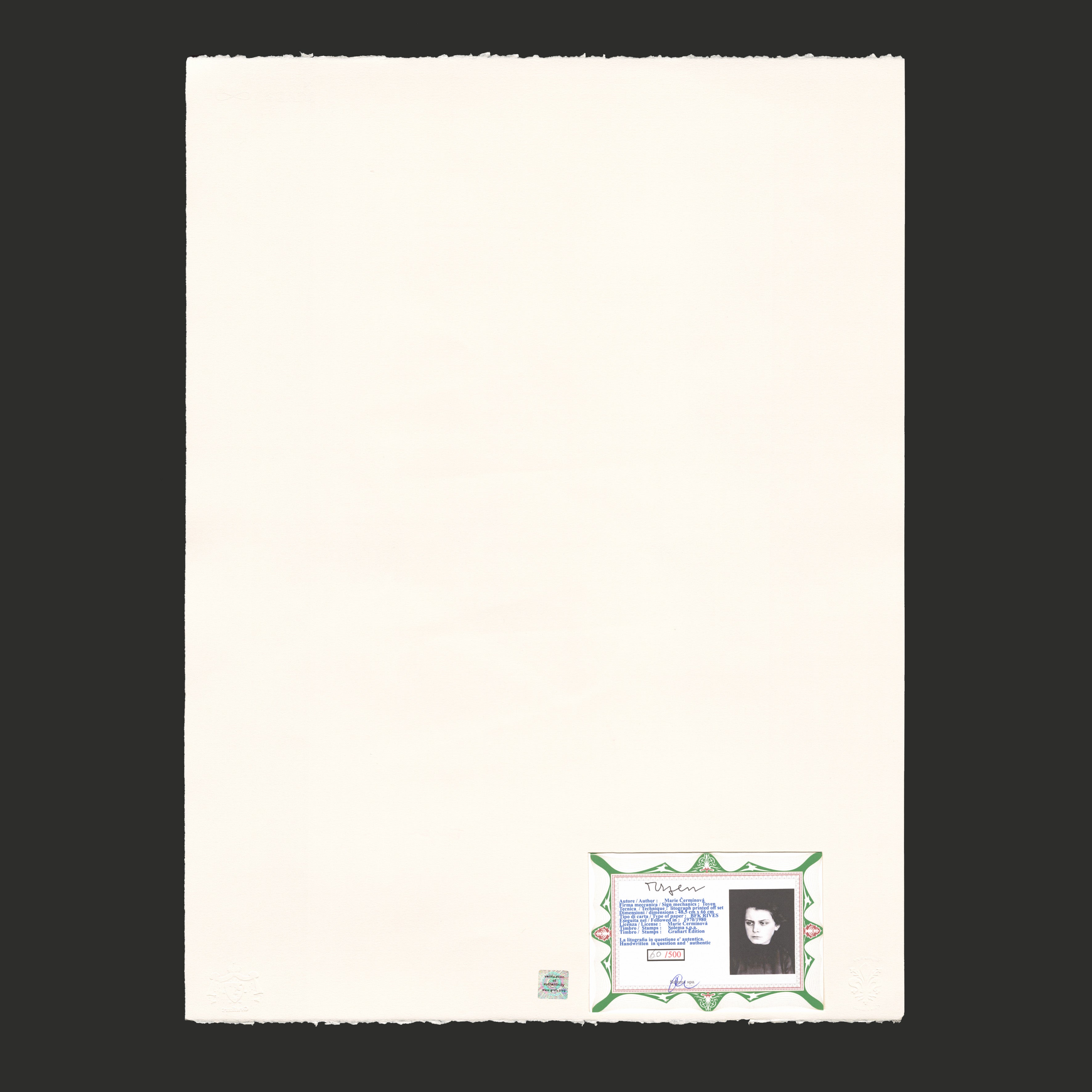 Certifikovaný grafický list, 47,7 x 66,5 cm. Číslováno 60/500. Certifikát, ruční papír BFK RIVES. Signováno vpravo dole Toyen. Slepotiskové razítko: Solema s.p.a., Grafiart Edition.