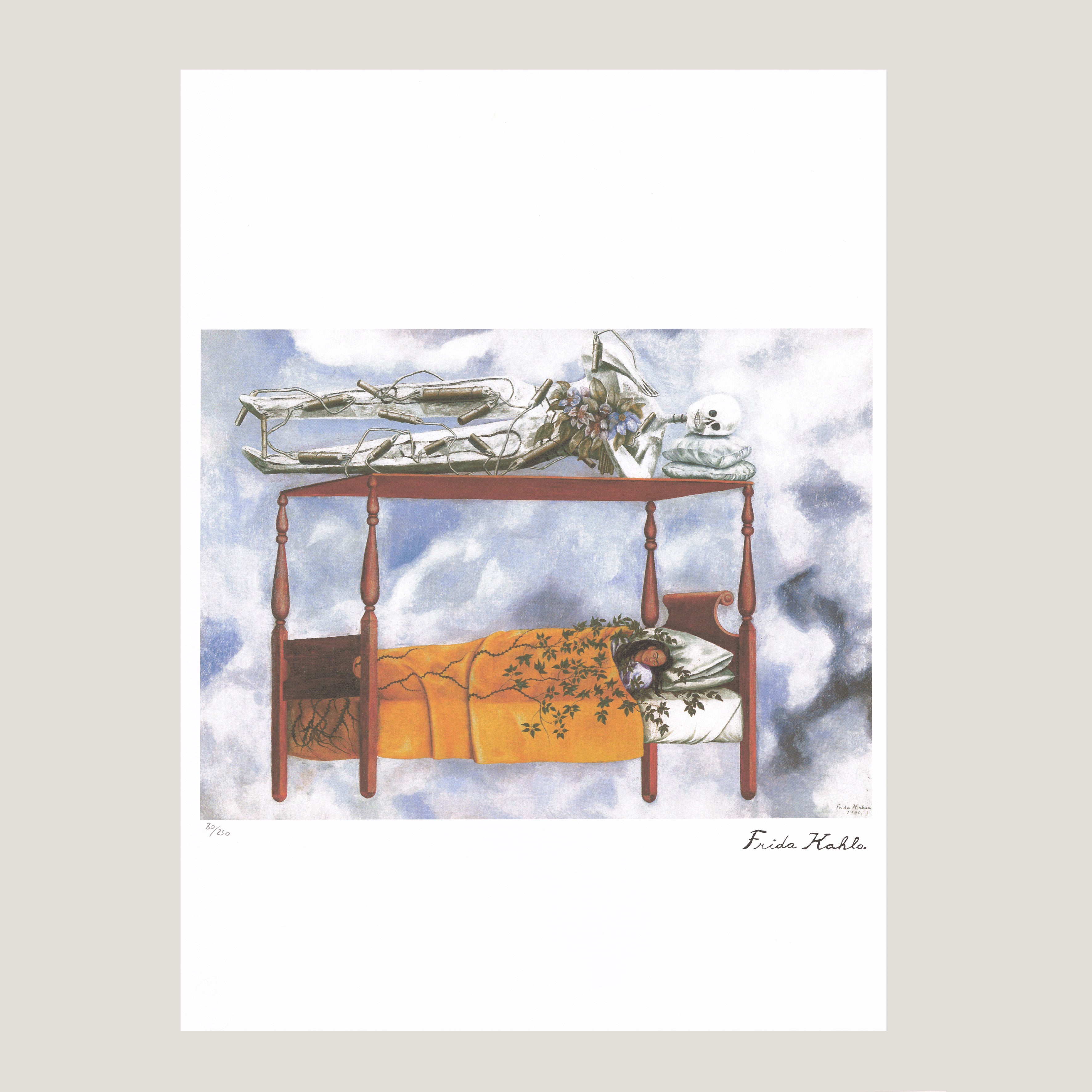 Grafický list 50x70 cm v limitovaném nákladu. Tisk č. 80/250. Slepotiskové razítko Leonardo Artis. Volný list. Certifikát, ruční papír Arches. Licence: Frida Kahlo Museum. Editor: Oro Cartier Limited Editions