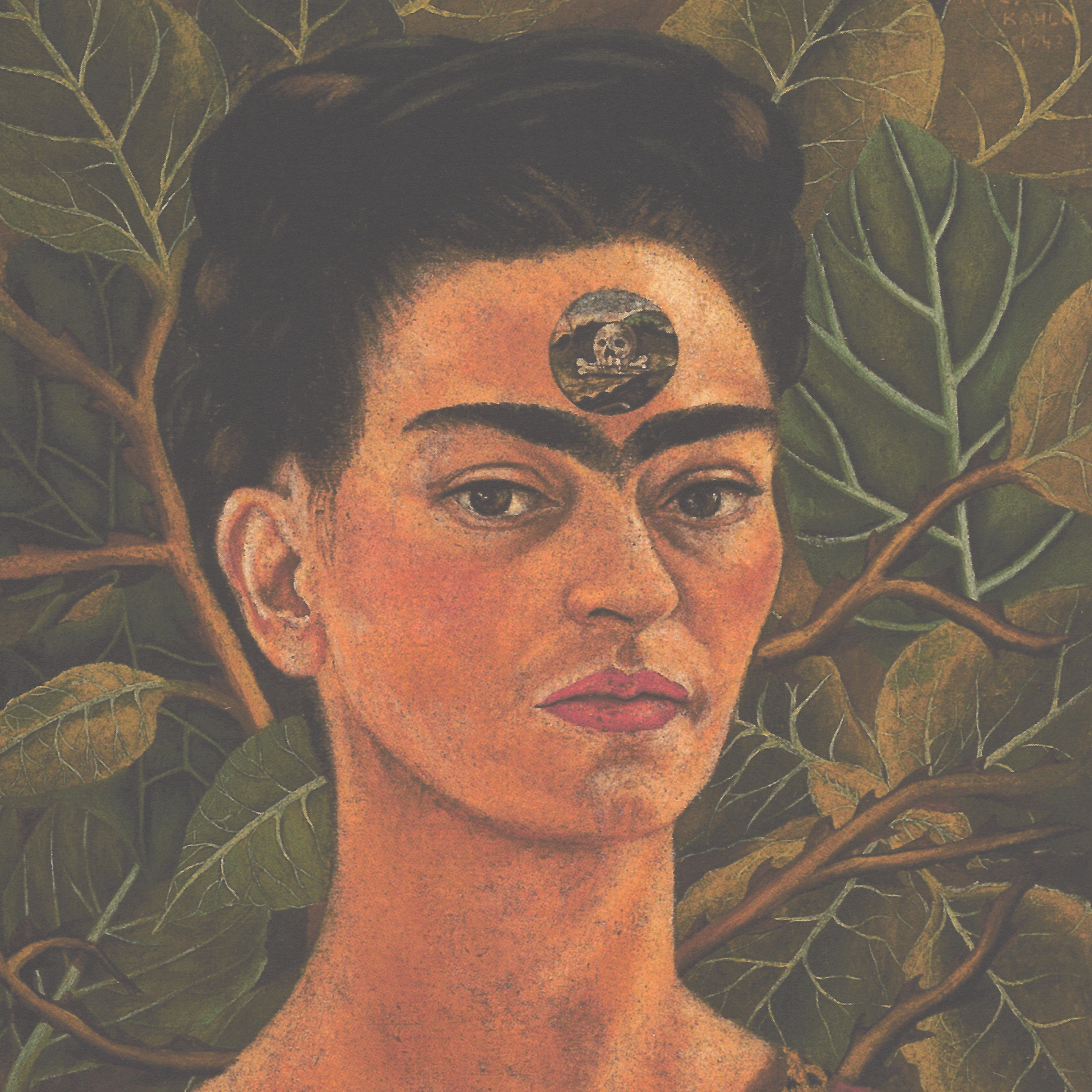 Frida Kahlo (Mexiko, 1907 – 1954) byla slavná mexická malířka známá svými komplexními autoportréty. Inspirována předkolumbovskými artefakty a mexickým lidovým uměním vytvořila Kahlo bizarní, ale krásná díla, která surrealista André Breton kdysi popsal jako „stuhu kolem bomby“.