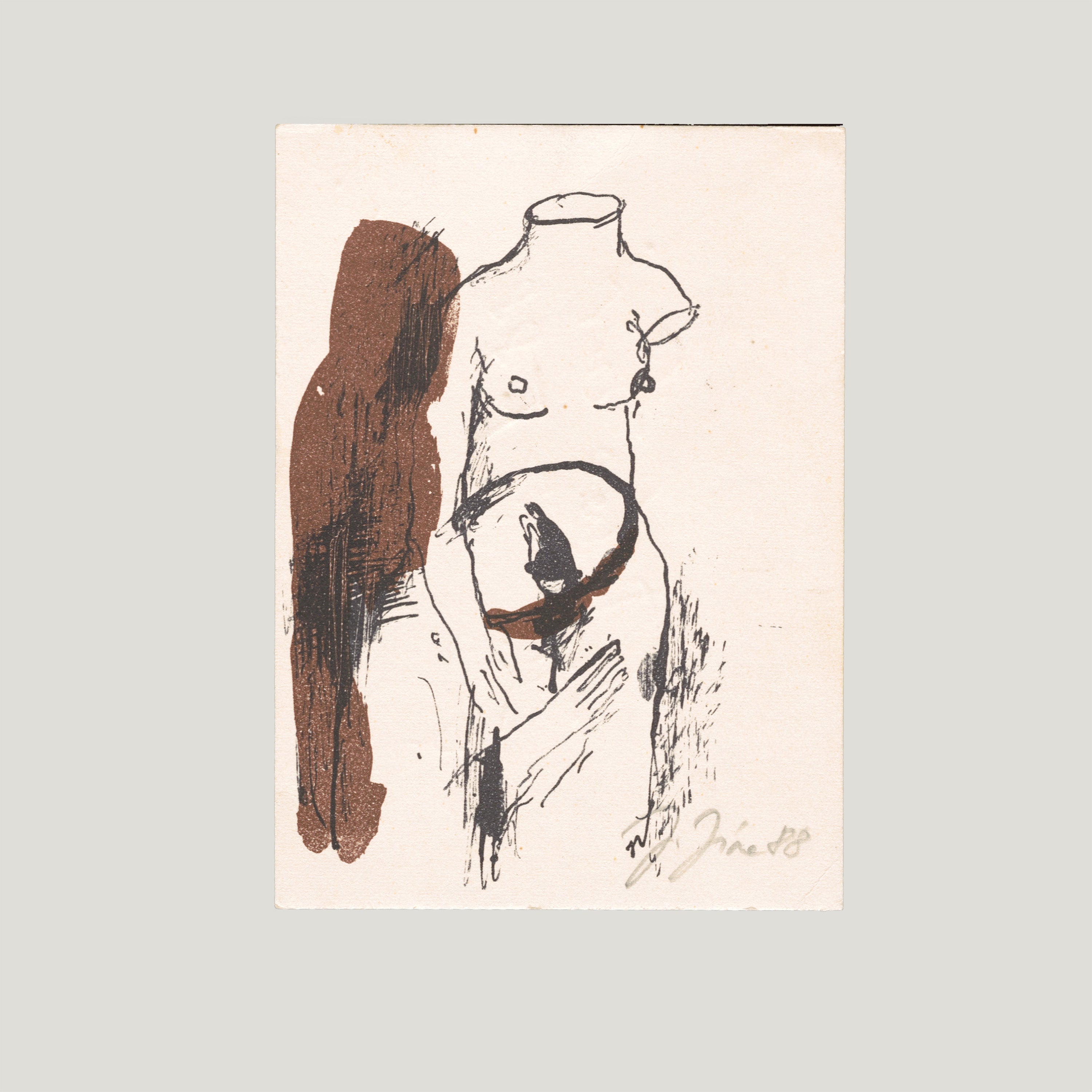 Barevná litografie, 10,5x15cm, signováno vpravo dole 1988, věnování na rubu, volný list