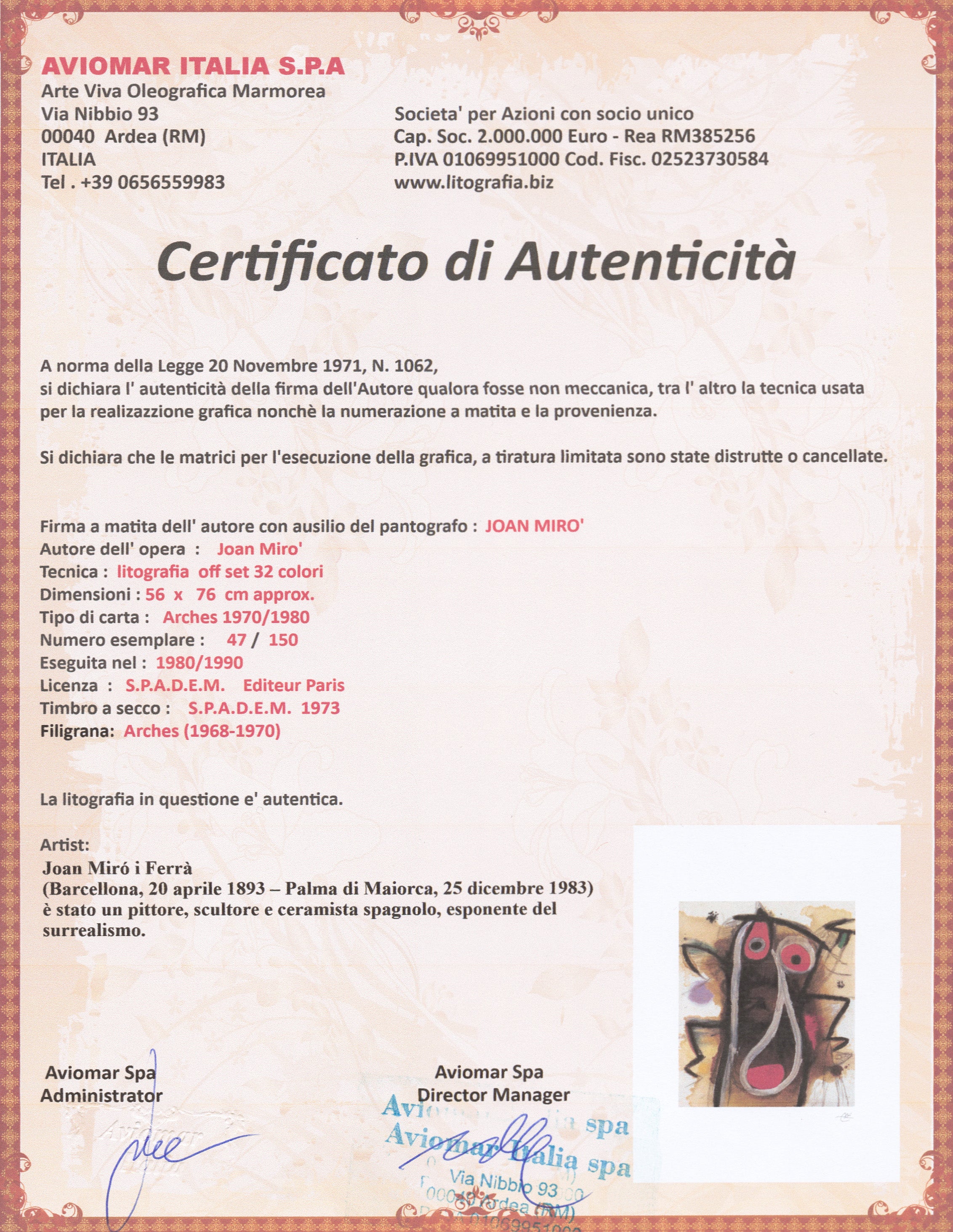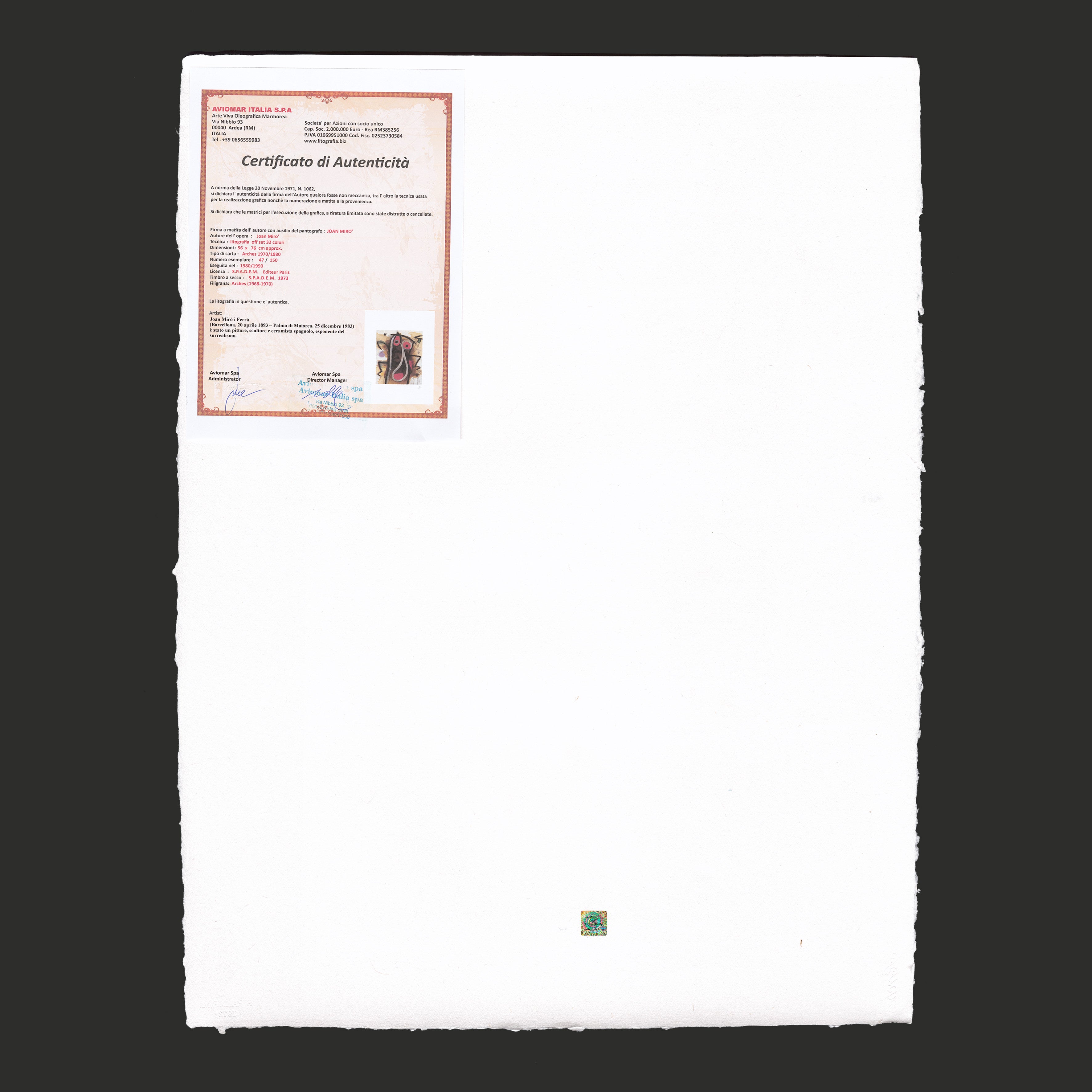 Grafický list v limitovaném nákladu. Tisk č. 47/150. Slepotiskové razítko vydavatele díla. Ruční papír. Volný list.