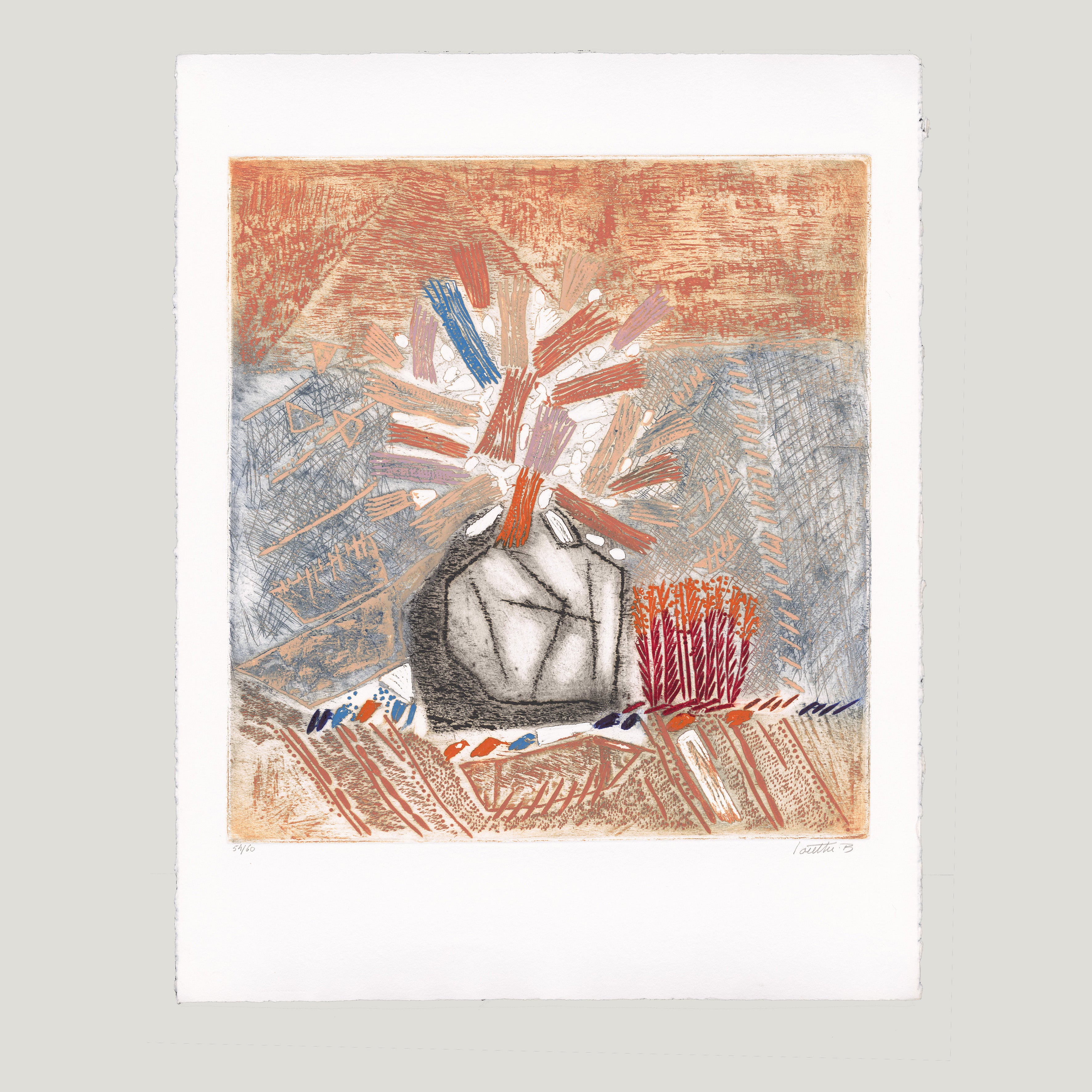 Kombinovaná technika, tisková plocha 54,5 x 49,5 cm, grafický list 57,5 x 76 cm. Signováno tužkou a číslováno 54/60, Loutre B.