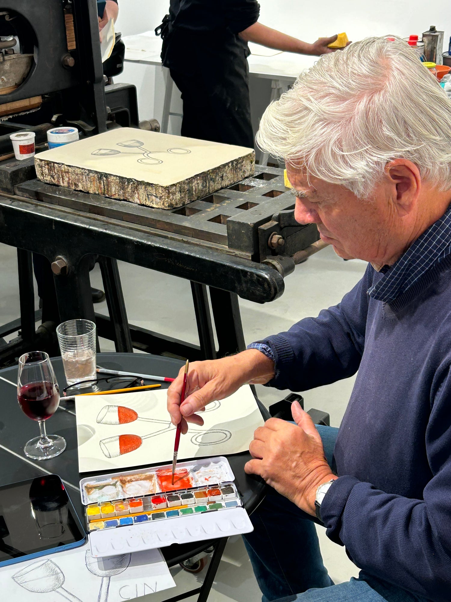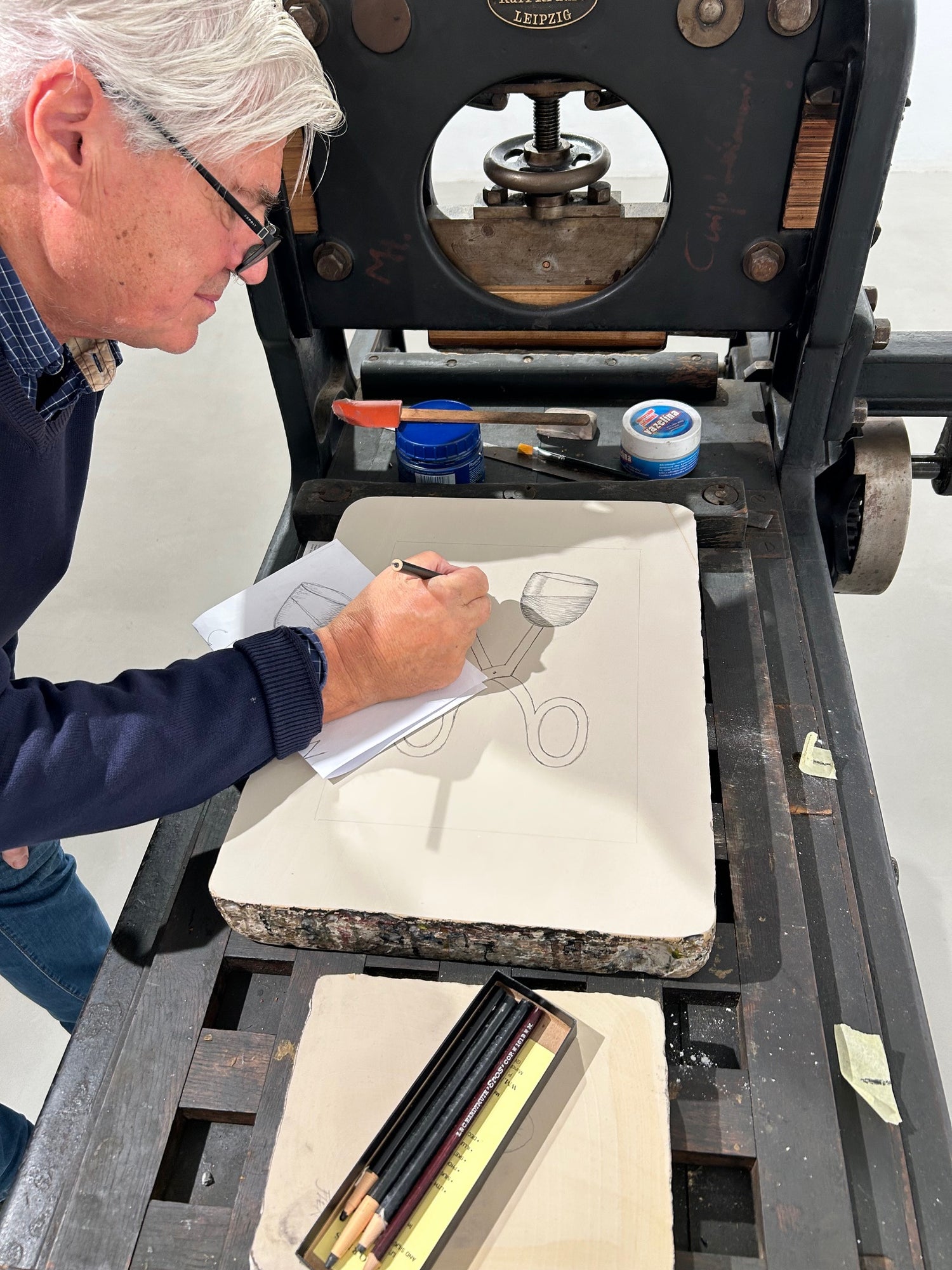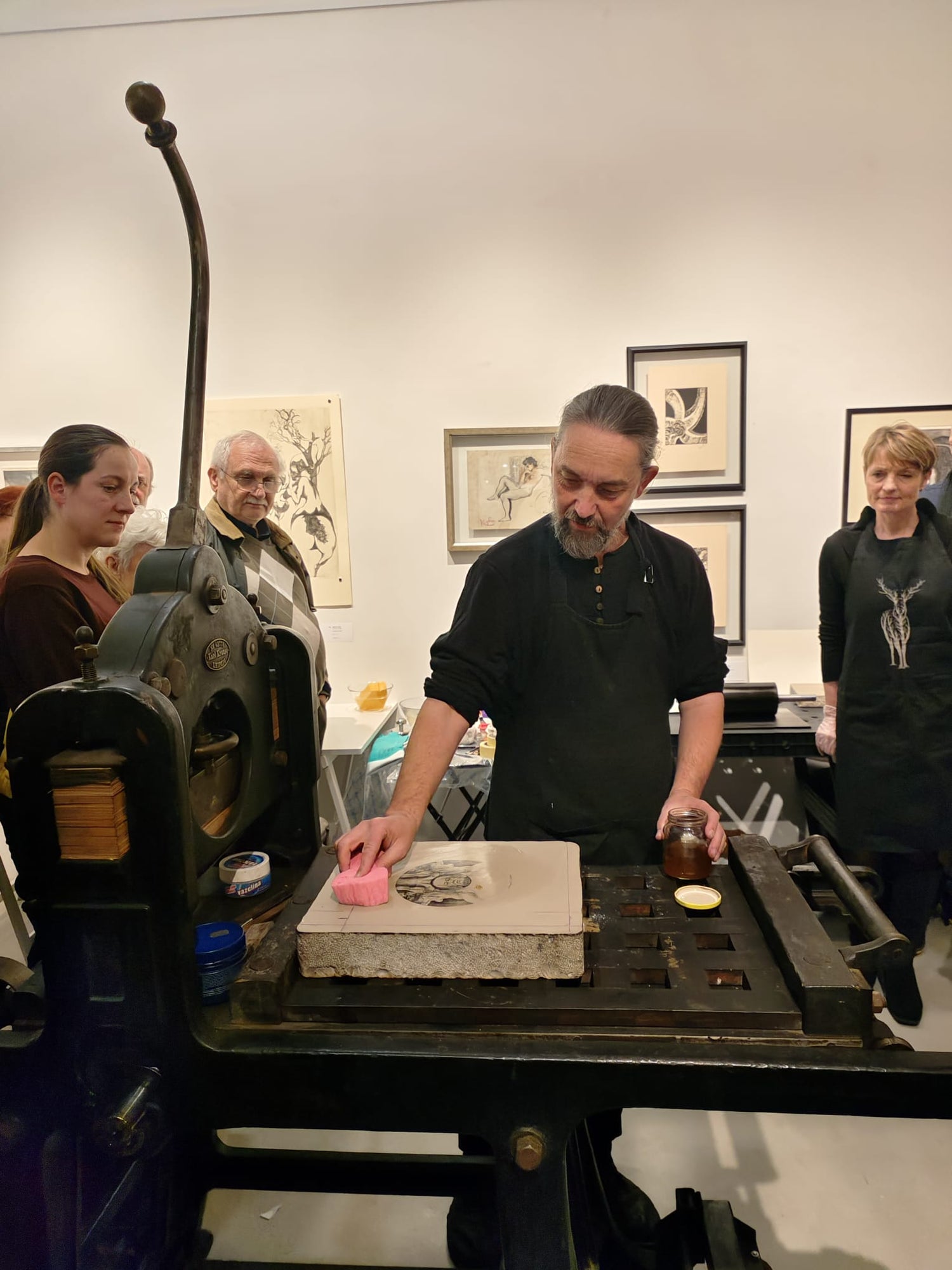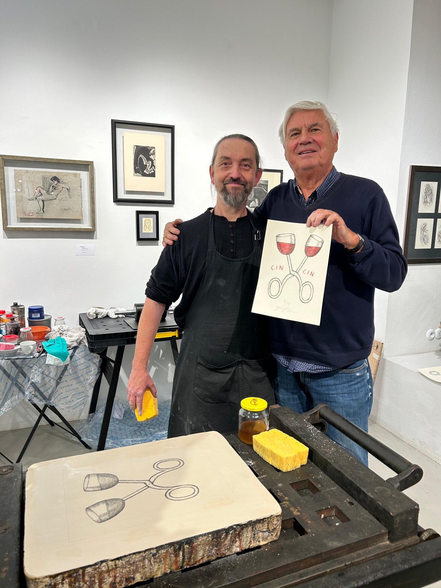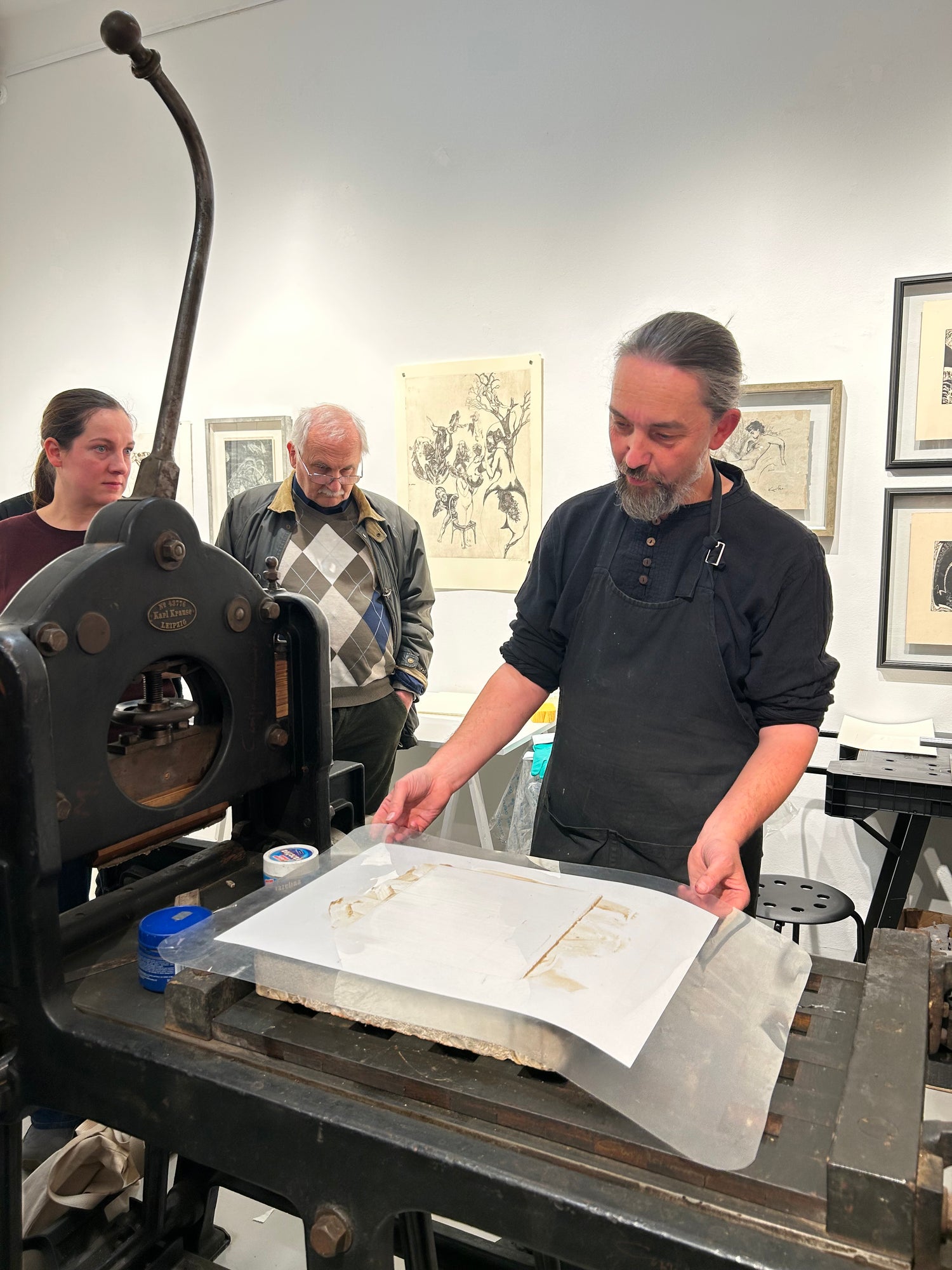 Součástí naší expozice bude také tiskařský lis pana Petra Korbeláře, který tiskne litografie už od roku 1993 a spolupracuje se stovkou předních českých umělců. Mezi ně patří, i v naší Galerii dobře známí autoři – Oldřich Kulhánek, Oldřich Jelen, Vladimír Suchánek, Marina Richter, Martin Raudenský, Jakub Špaňhel apod. Během naší výstavy budete mít jedinečnou příležitost prohlédnout si, jak litografie vzniká. V podvečer dne 25. 11. a 9. 12. společně vytiskneme limitované edice děl Veroniky Jelenové a Jiřího Slívy, která si u nás můžete přímo zakoupit a odnést s sebou domů a obdarovat sebe nebo své blízké tímto unikátním dárkem pod vánočním stromečkem.