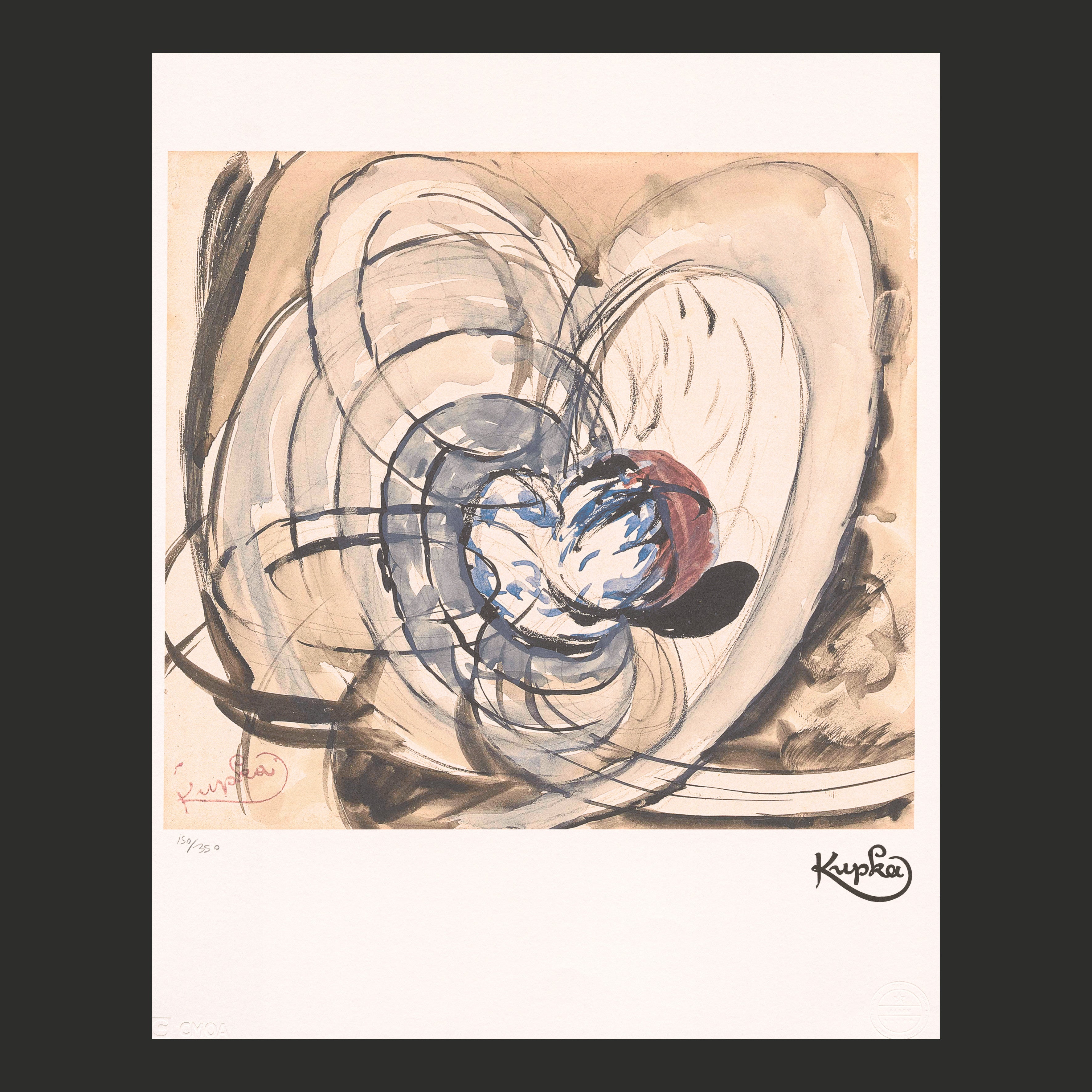 Certifikovaný grafický list, 50 x 70 cm. Číslováno 150/350. Certifikát, ruční papír Cotton Cream. Signováno vpravo dole Kupka. Slepotiskové razítko: CMOA MUSEUM, SPADEM PARIS. Licence Frank Kupka Atelier 7, Rue Lemaitre Puteaux - Seine France.