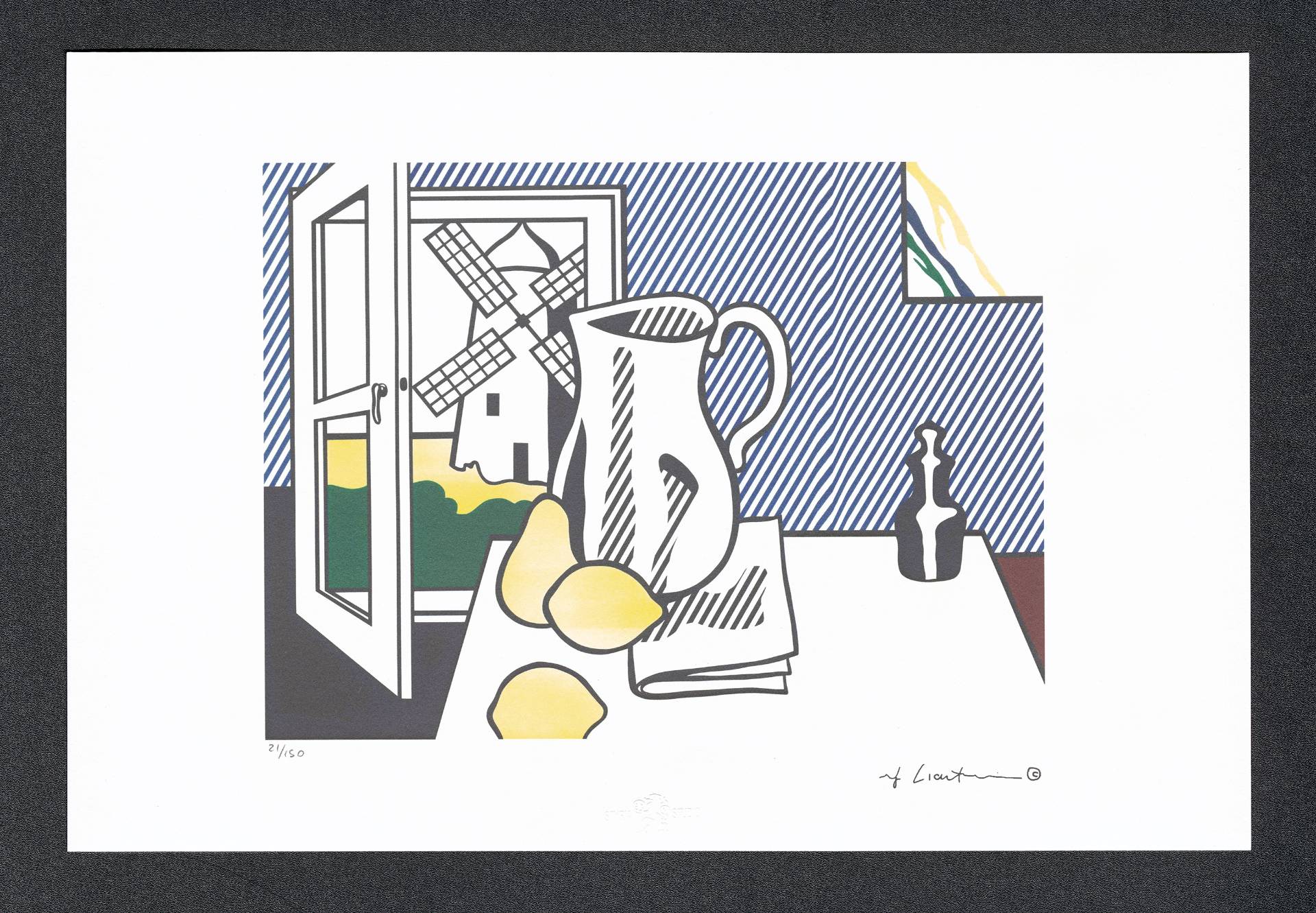 Certifikovaný grafický list, 35 x 50 cm, 21/150. Certifikát, slepotisk STYRIA Studio, ruční papír Arches France. Signováno vpravo dole Roy Lichtenstein ©. Na zadní straně razítko: CASTELLI Graphics.