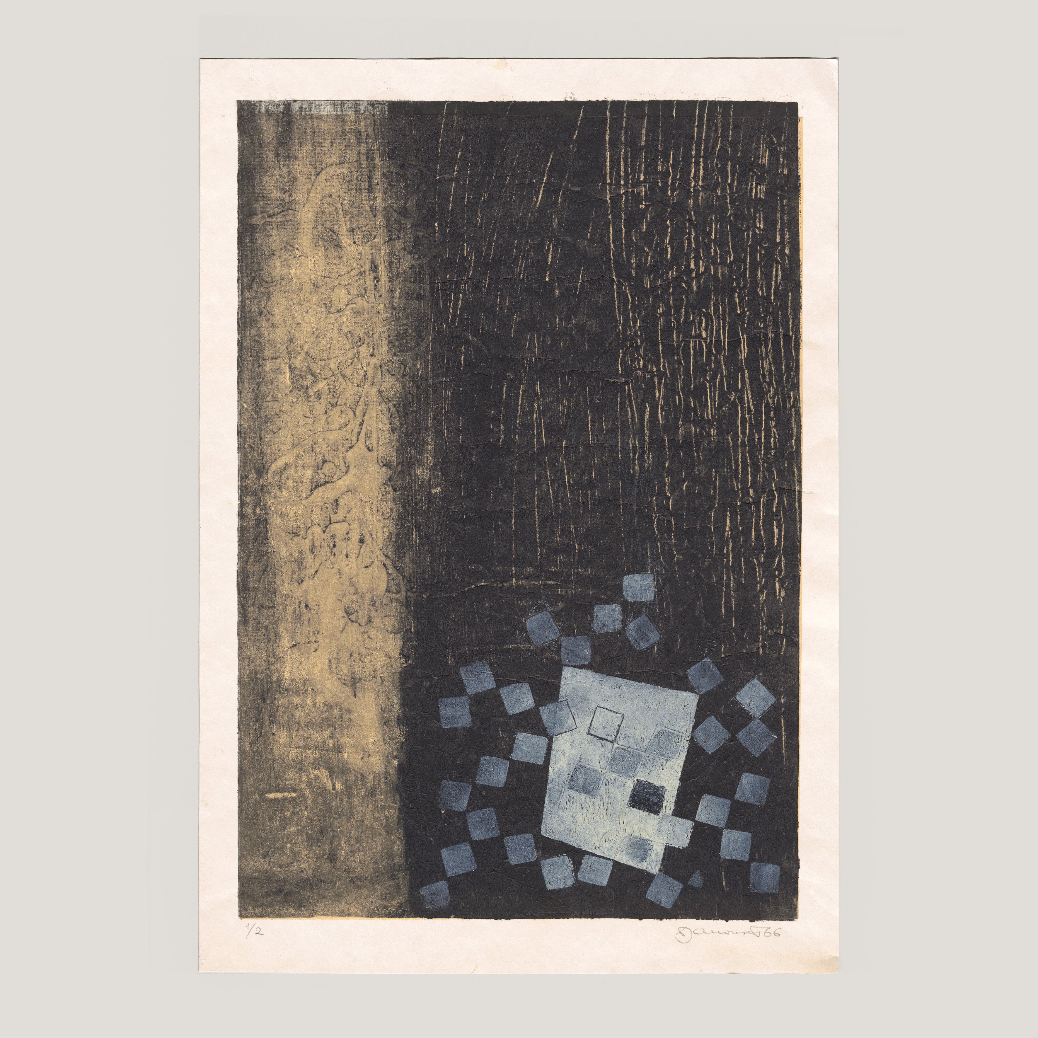Kombinovaná technika. Tisková plocha 25x37,5 cm, grafický list 28,5x41,8 cm, signováno tužkou Dušan Janoušek 66, číslováno 1/2, volný list.