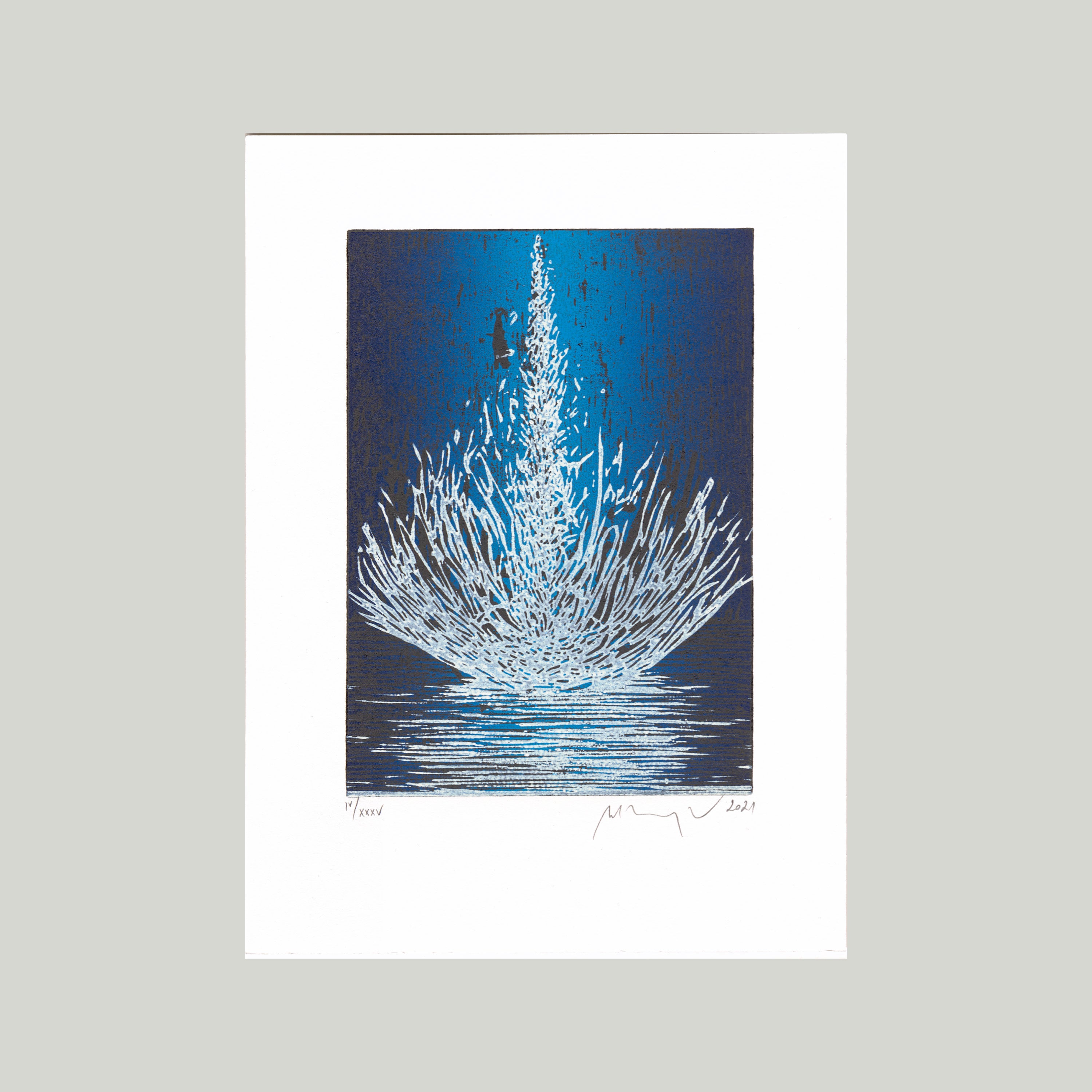 Barevný linoryt 10x14,5 cm tisková plocha, grafický list 15x21 cm, číslováno, signováno M. Manojlín 2021