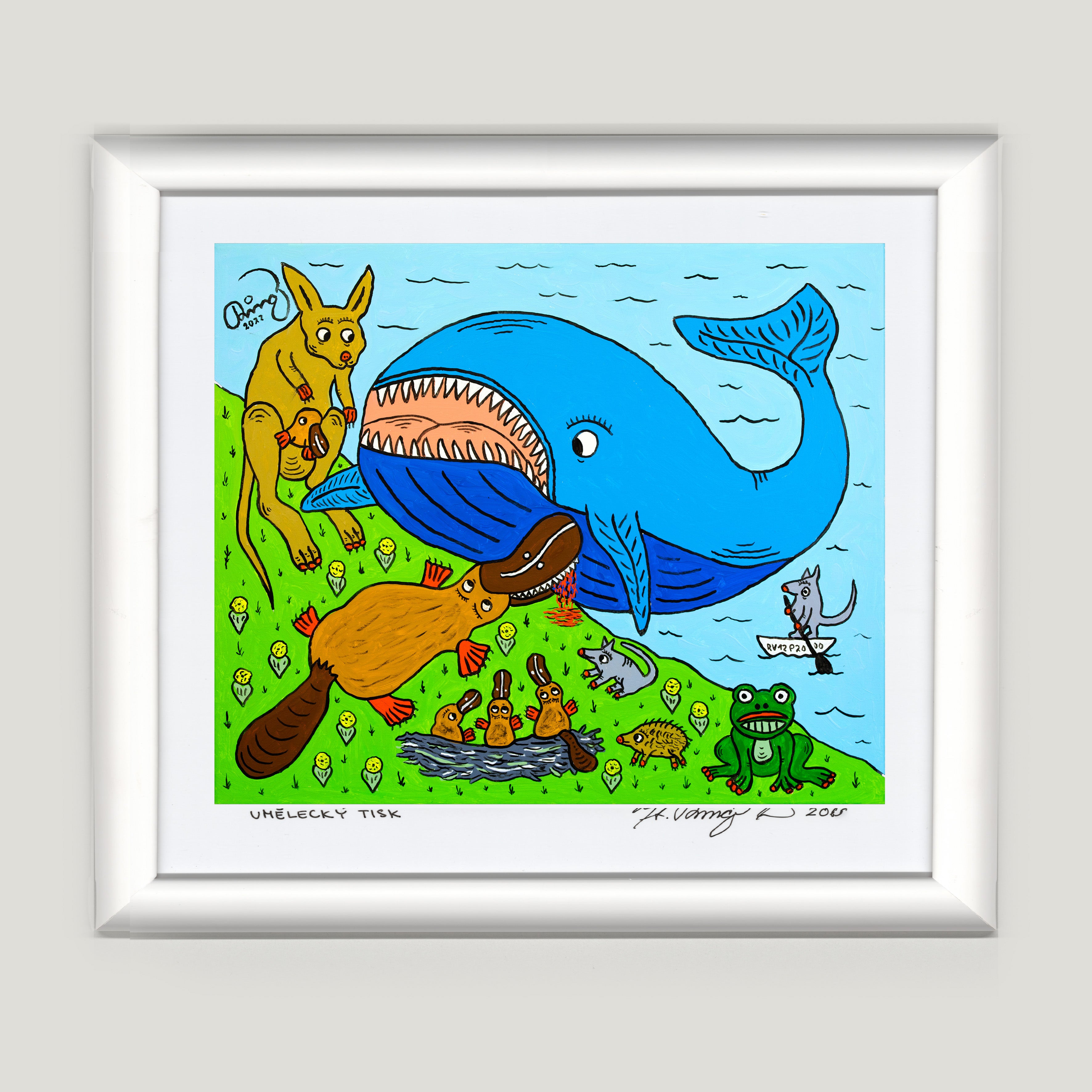 Umělecký tisk obrazu 40x36 cm, podepsaný autorem, cena včetně zasklení a rámu.