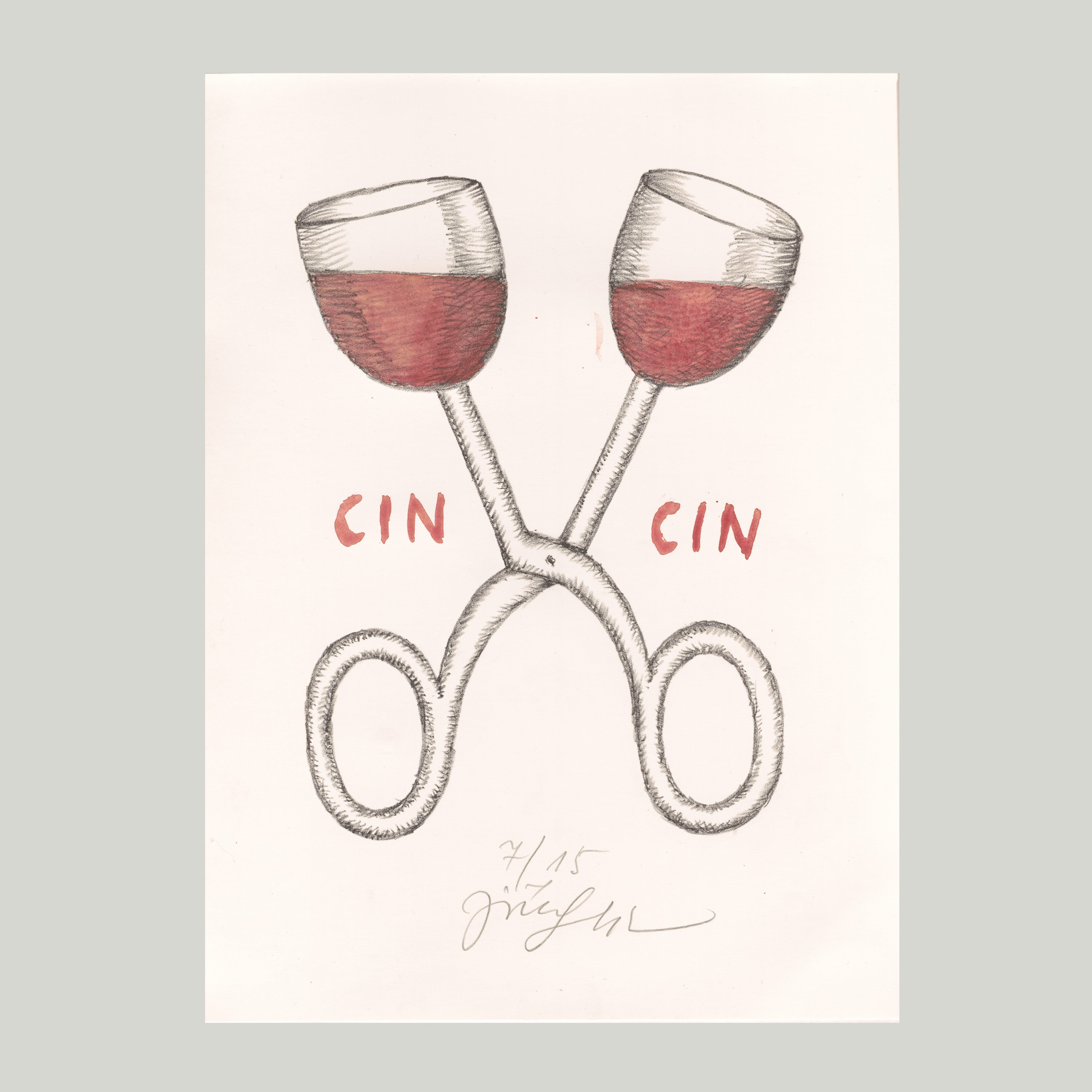Limitovaná edice kolorované litografie Nůžky CIN CIN v počtu 15 kusů vznikla ve spolupráci s výtvarníkem Jiřím Slívou, tiskařem Petrem Korbelářem a naší Galerií.
