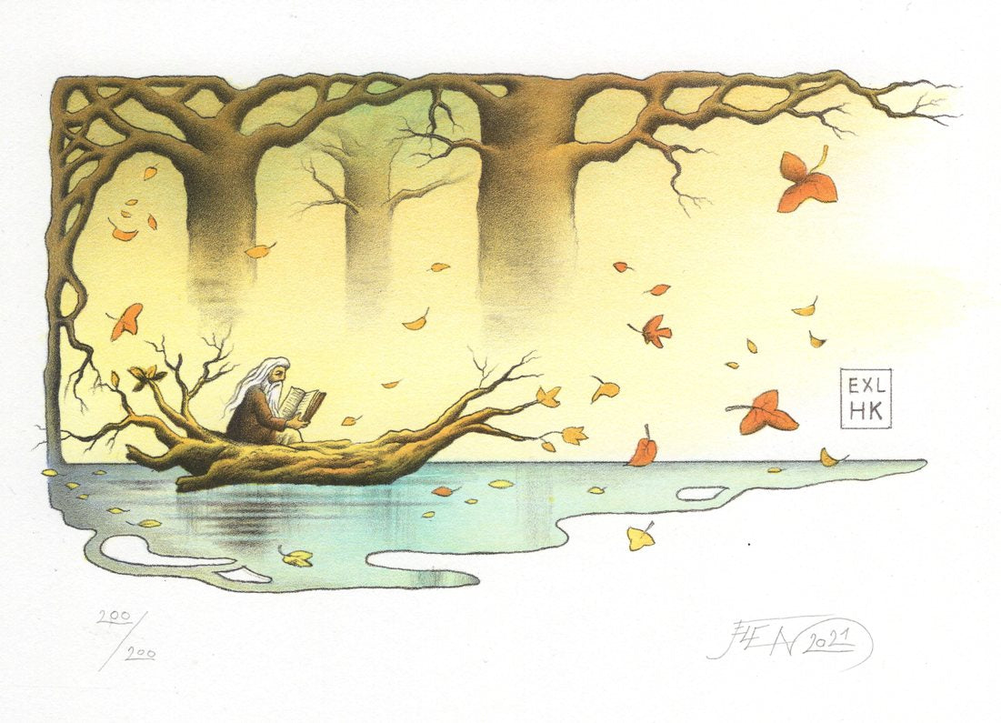 Litografie 192/200, 16 x 11,5, grafický list, signováno O. Jelen. Volný grafický list - nerámováno