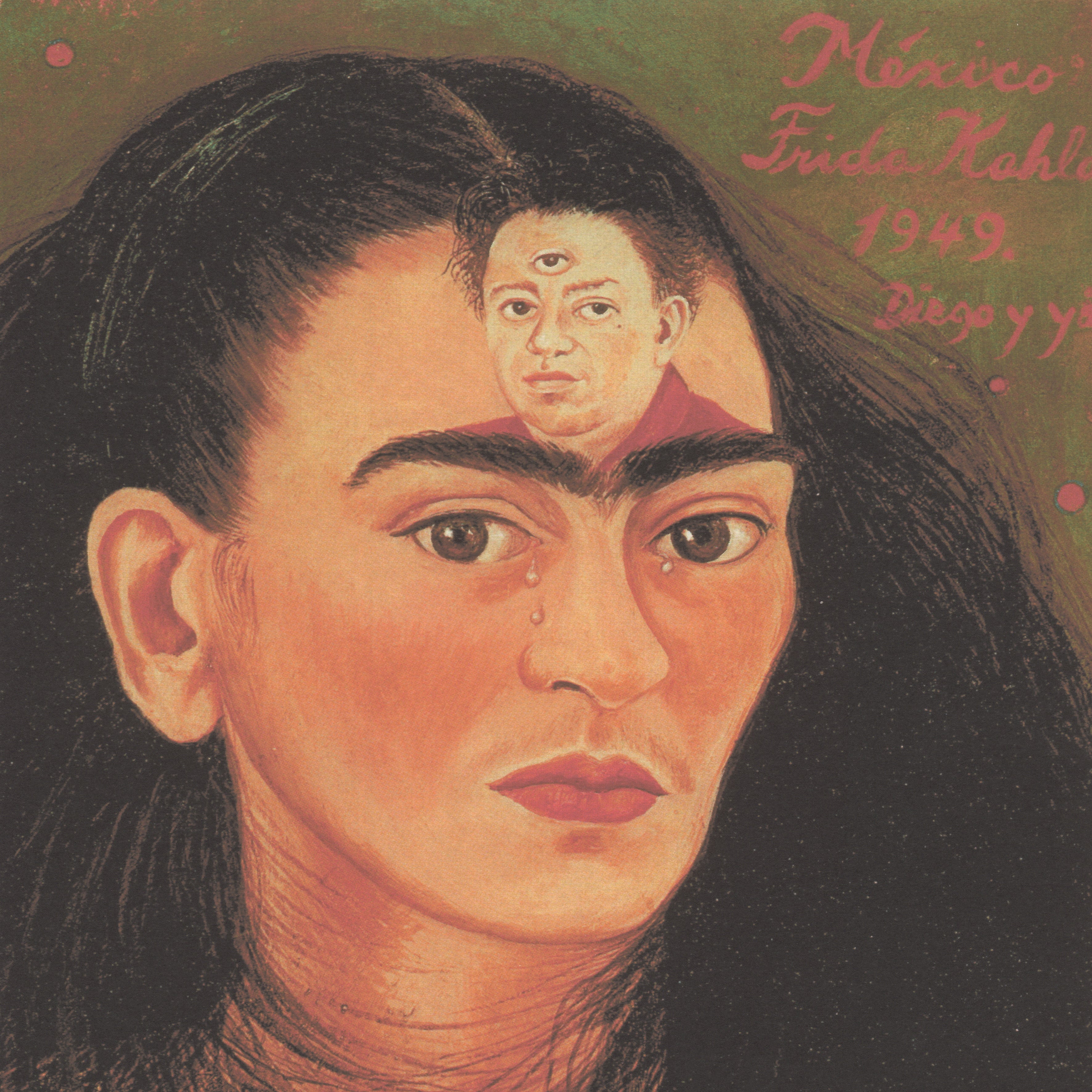 Frida Kahlo (Mexiko, 1907 – 1954) byla slavná mexická malířka známá svými komplexními autoportréty. Inspirována předkolumbovskými artefakty a mexickým lidovým uměním vytvořila Kahlo bizarní, ale krásná díla, která surrealista André Breton kdysi popsal jako „stuhu kolem bomby“.