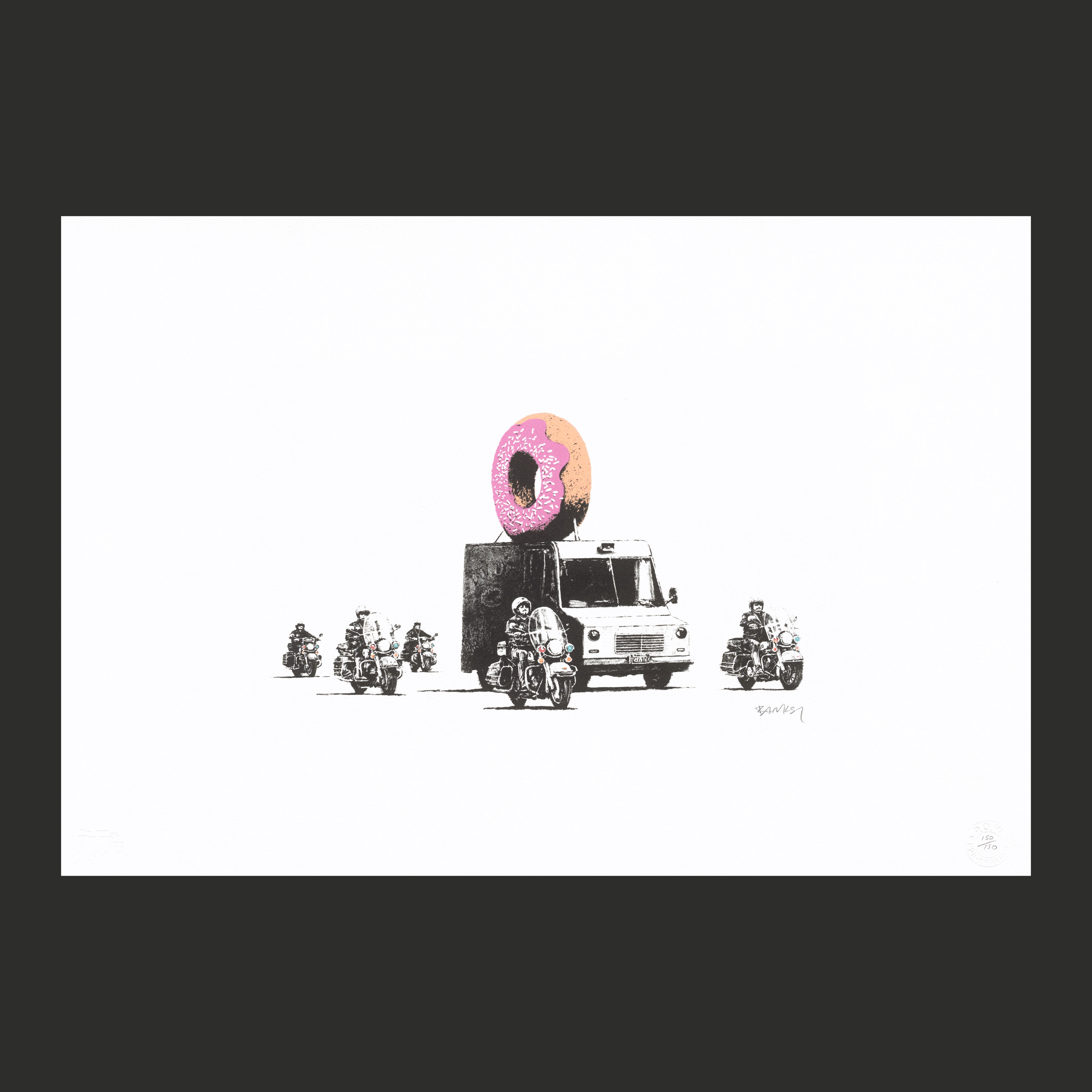 Grafický list, 50 x 70 cm. Číslováno, slepotisk P.O.W.-BANKSY, ruční papír Fabriano Cotton Privilege. Signováno vpravo dole BANKSY.