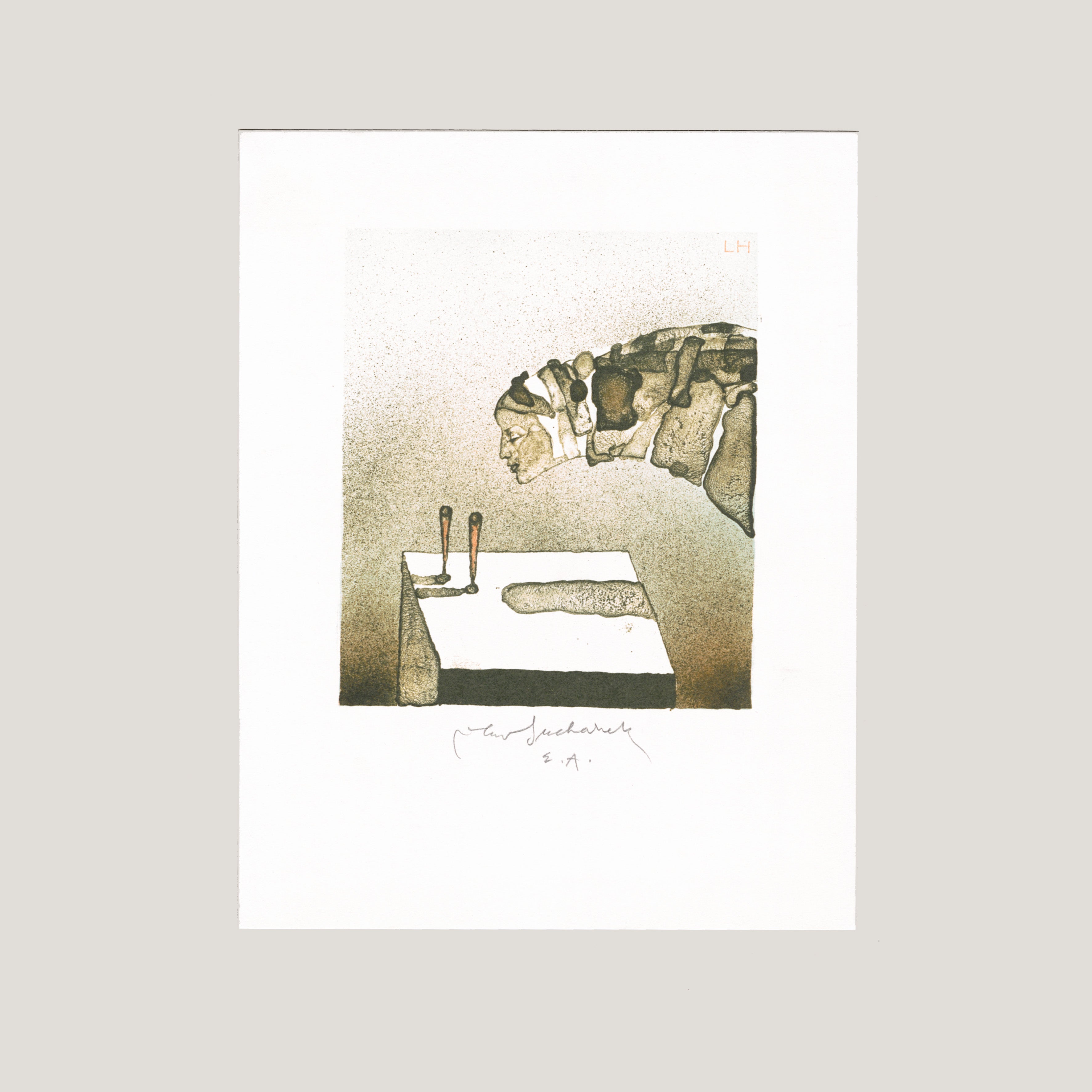 Litografie 15x20 cm, grafický list, signováno Vladimír Suchánek, volný grafický list - nerámováno