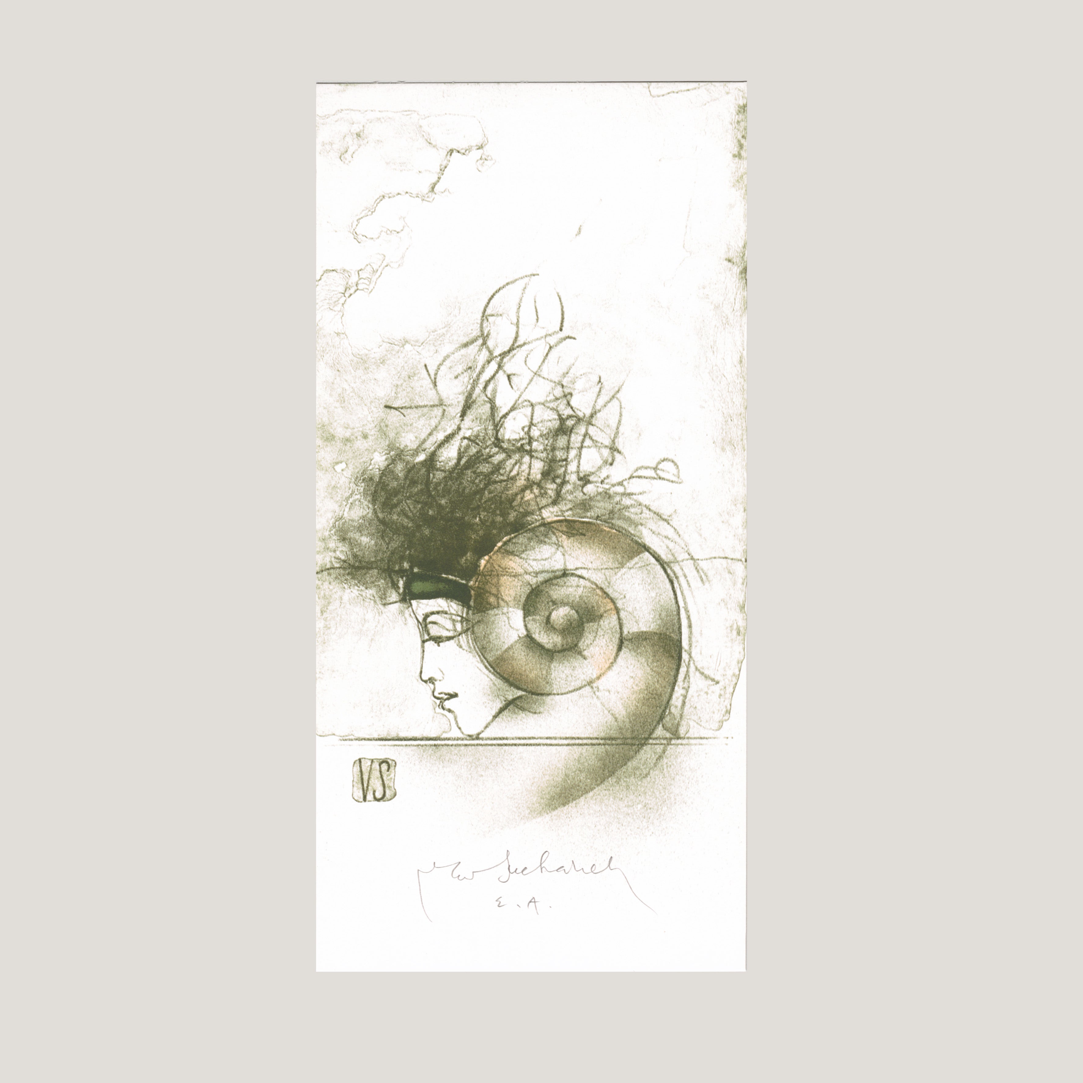 Litografie 10x20,8 cm, grafický list, signováno Vladimír Suchánek, volný grafický list - nerámováno