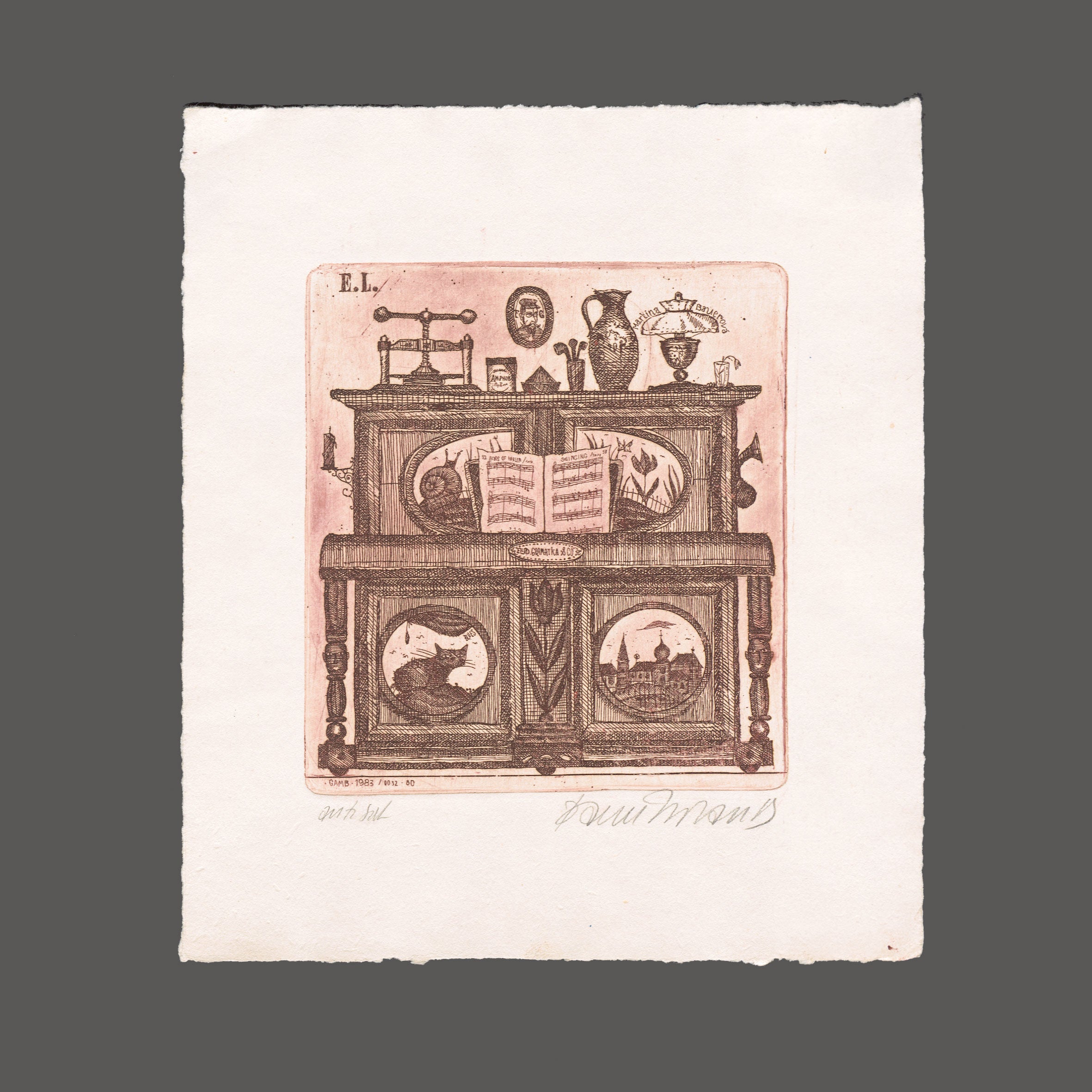 Lept 8,7x10 cm tisková plocha, 13,5x16,2 cm grafický list, at, signováno Milan Bauer