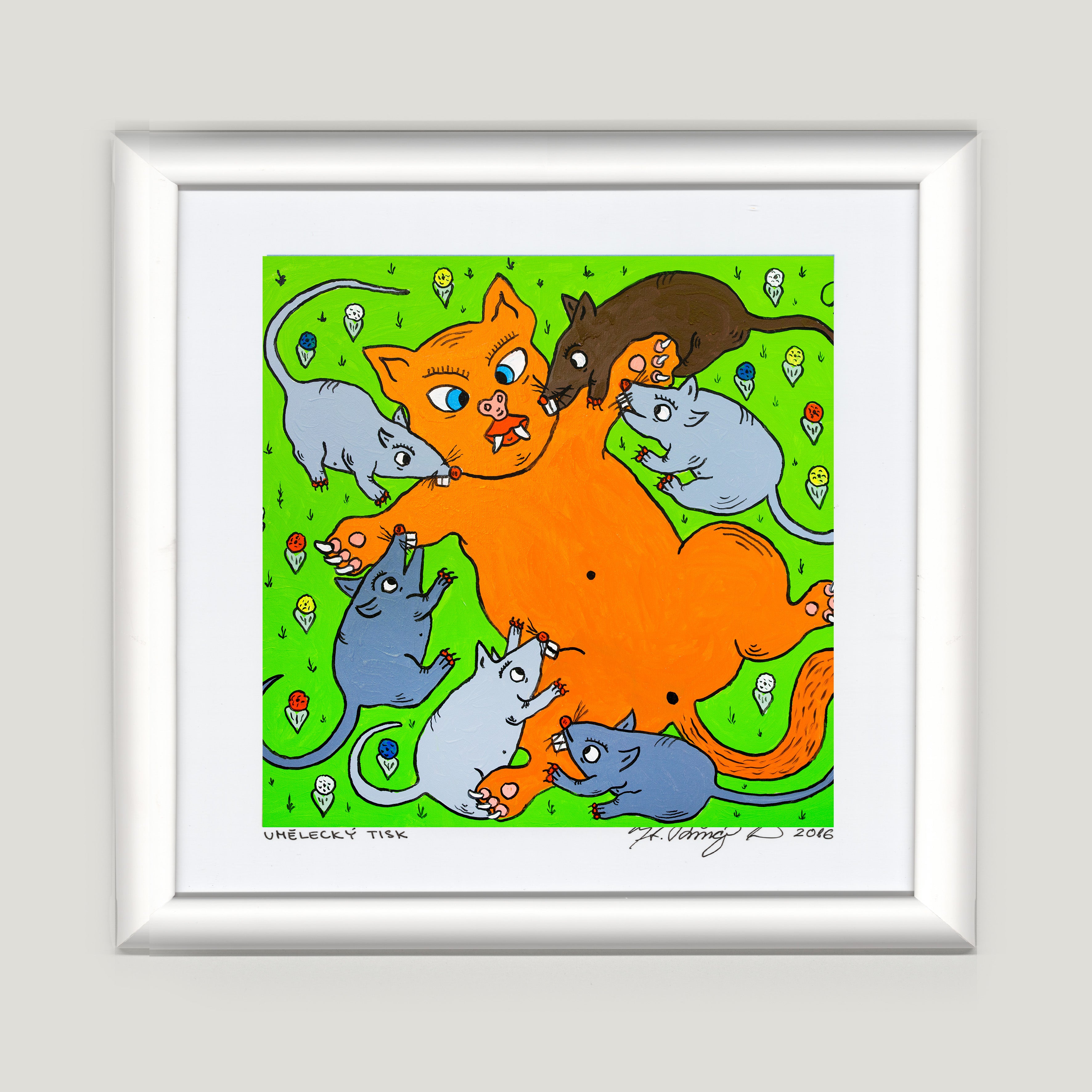 Umělecký tisk obrazu 39 x 35 cm, podepsaný autorem, cena včetně zasklení a rámu.