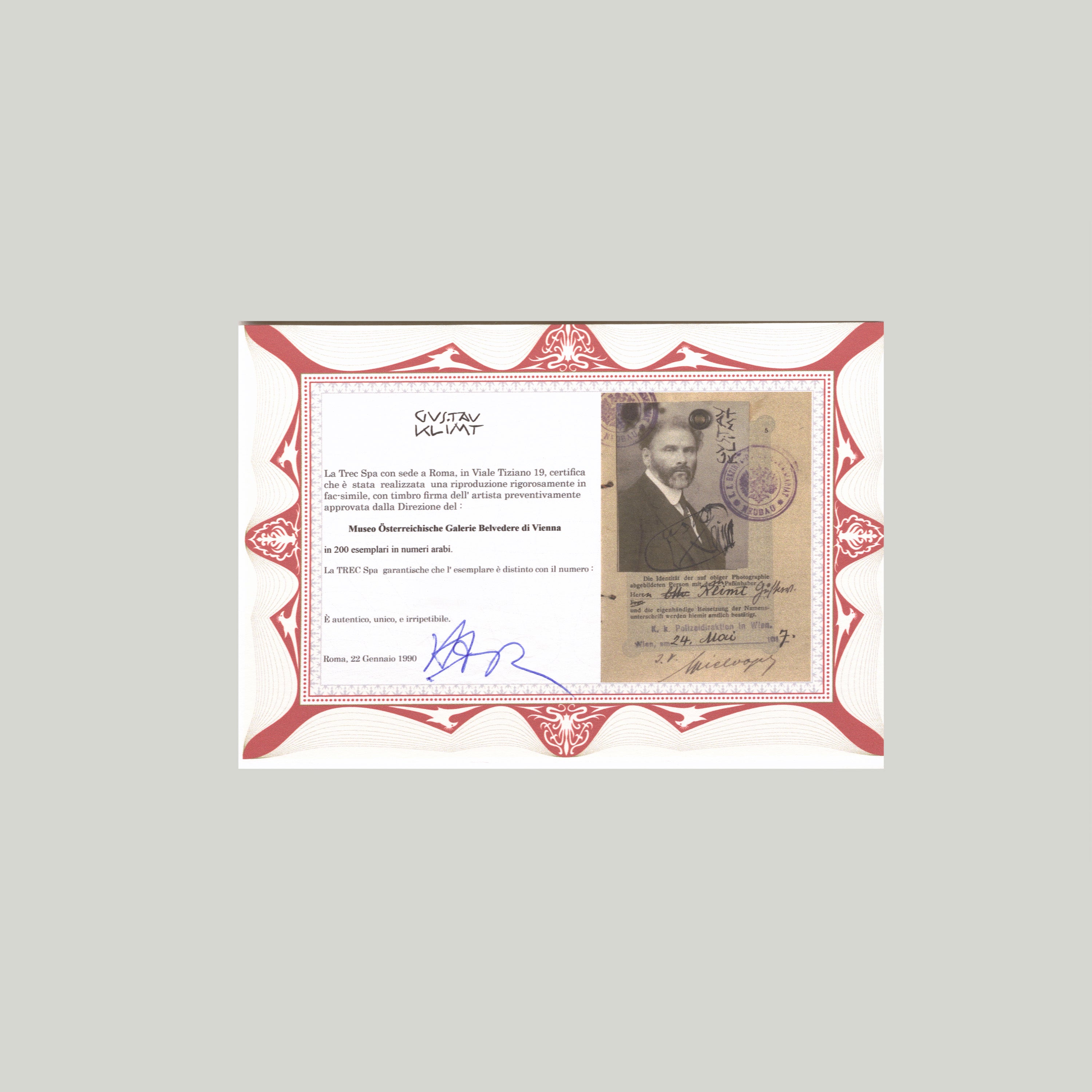Gustav Klimt (1862-1918) byl rakouský malíř, známý především jako autor alegorických, mytologických i skutečných portrétů, vyznačujících se podmanivou krásou a rafinovanou smyslovostí s erotickým nábojem. Již v mládí projevoval výrazné nadání pro kresbu a malbu a umělecké sklony měli i oba jeho bratři. Ještě v průběhu studia vytvořil umělecké trio se svým bratrem Ernstem a spolužákem Franzem Matschem. Z jejich dílny pochází například výzdoba divadla v Karlových Varech nebo v Liberci, kde dodnes můžeme vidět původní malovanou oponu. V roce 1897 se Gustav Klimt stal prvním předsedou uměleckého sdružení Secese, které založil společně s architekty Josephem M. Olbrichem a Josefem Hoffmannem a dalšími významnými osobnostmi.