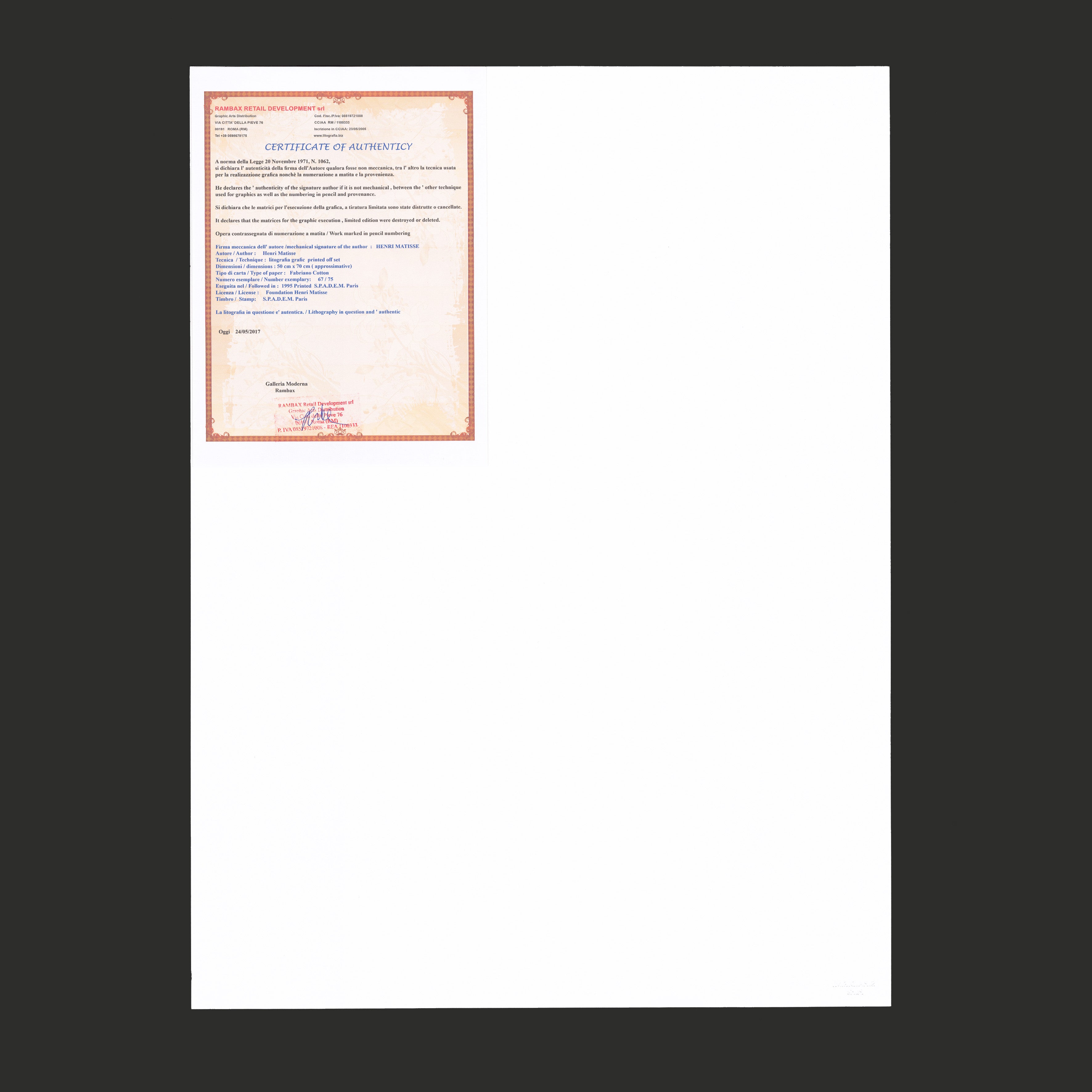 Henri-Émile-Benoit Matisse (1869 – 1954) byl francouzský grafik, sochař, scénograf a architekt. Nejznámější je však jeho malířské dílo - proslul svou prací s barvou a svým brilantním kreslířským uměním. Byl hlavní postavou uměleckého směru zvaného fauvismus. Spolu s Pablem Picassem patří k výtvarníkům, kteří nejvíce ovlivnili vývoj umění v 2. polovině 20. století.