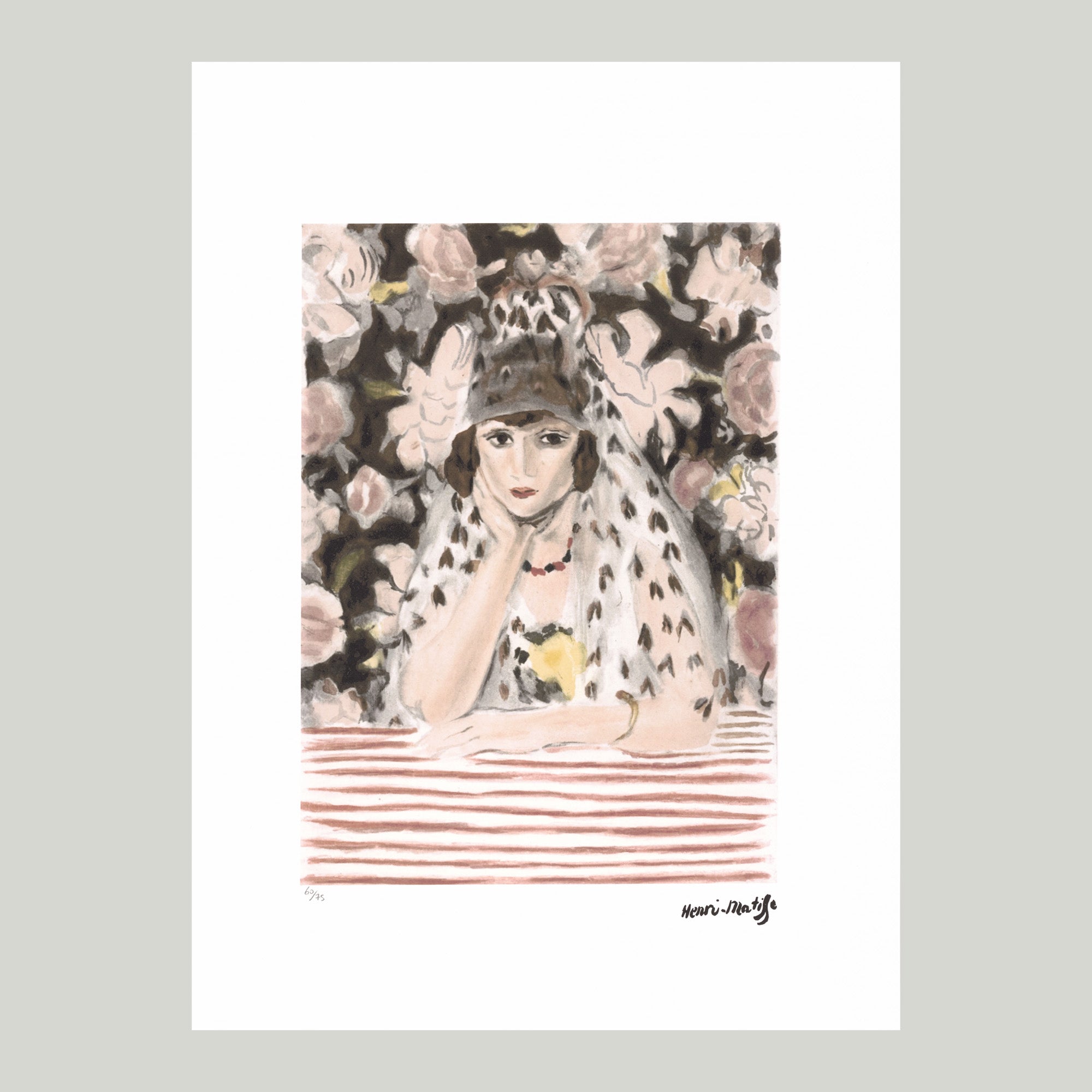 Certifikovaný grafický list, 50x70 cm. Číslováno 60/75. Certifikát, ruční papír Fabriano Cotton. Signováno vpravo dole Henri Matisse. Slepotisk S.P.A.D.E.M. Paris. Číslováno tužkou