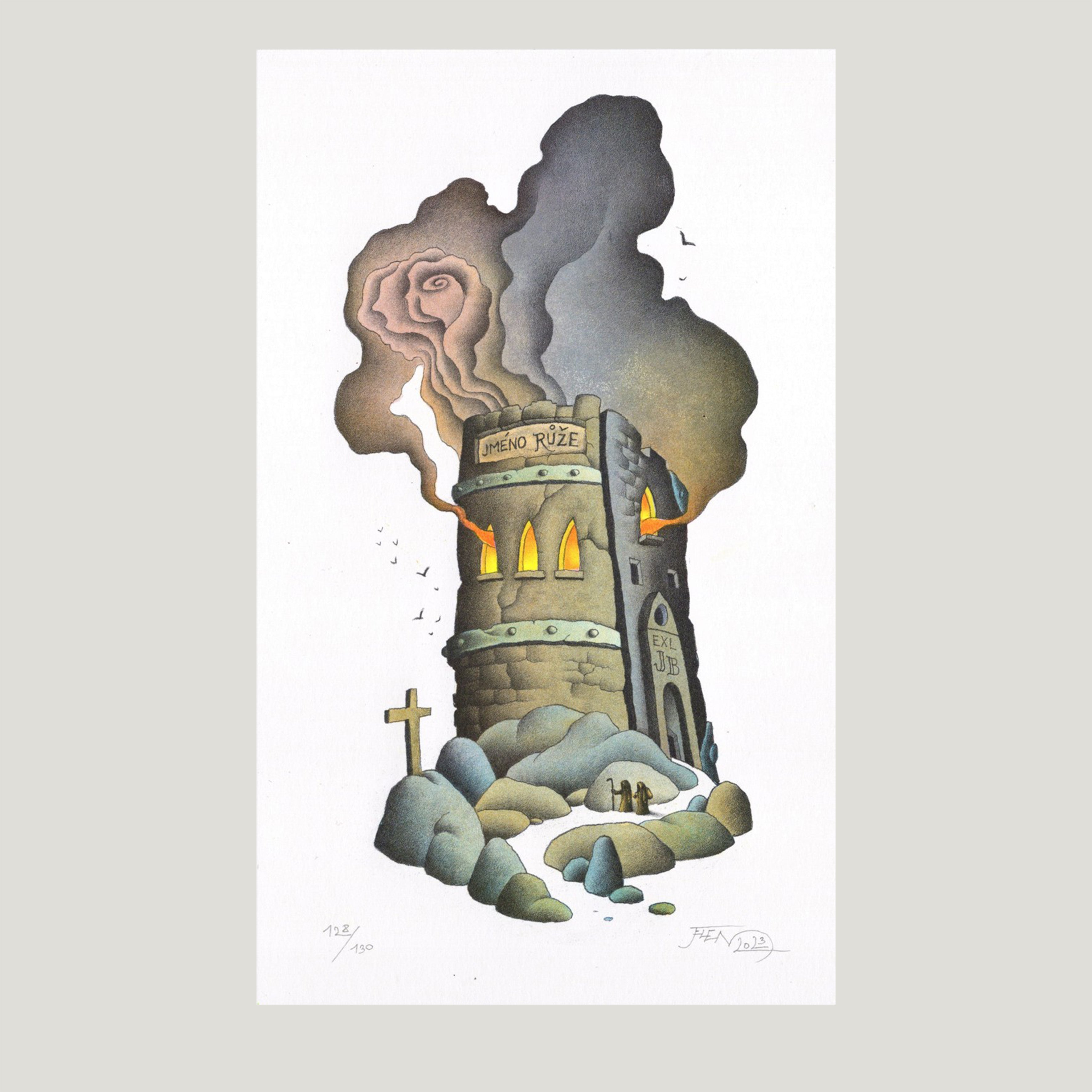 Litografie 129/130, 11,8x19 cm, grafický list, signováno O. Jelen. Volný grafický list - nerámováno