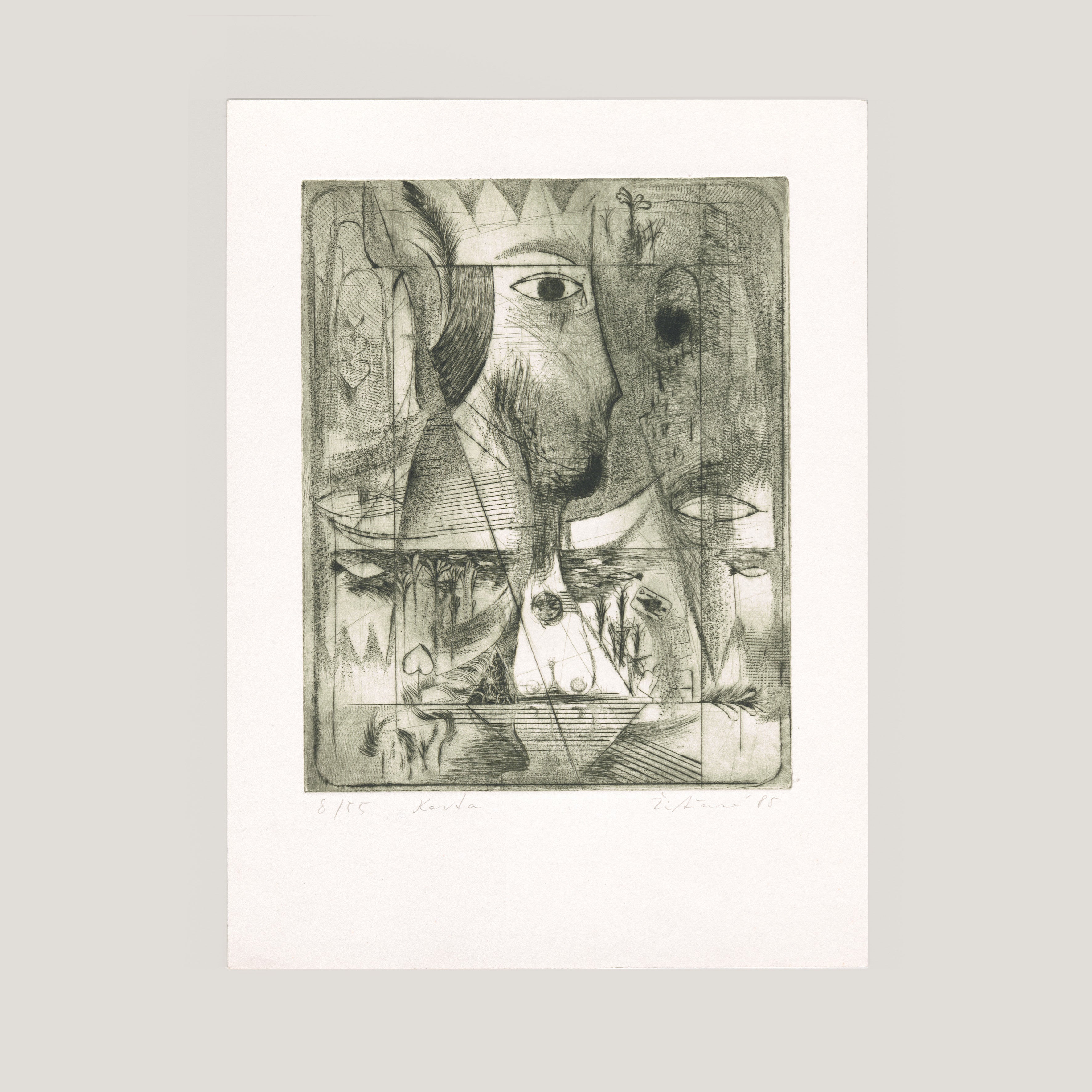 Suchá jehla. Formát tiskové plochy: 15,9x20,8 cm, formát papíru: 21x29,7 cm, signováno tužkou Žitňanová 85, číslováno 8/55 , volný list. číslováno
