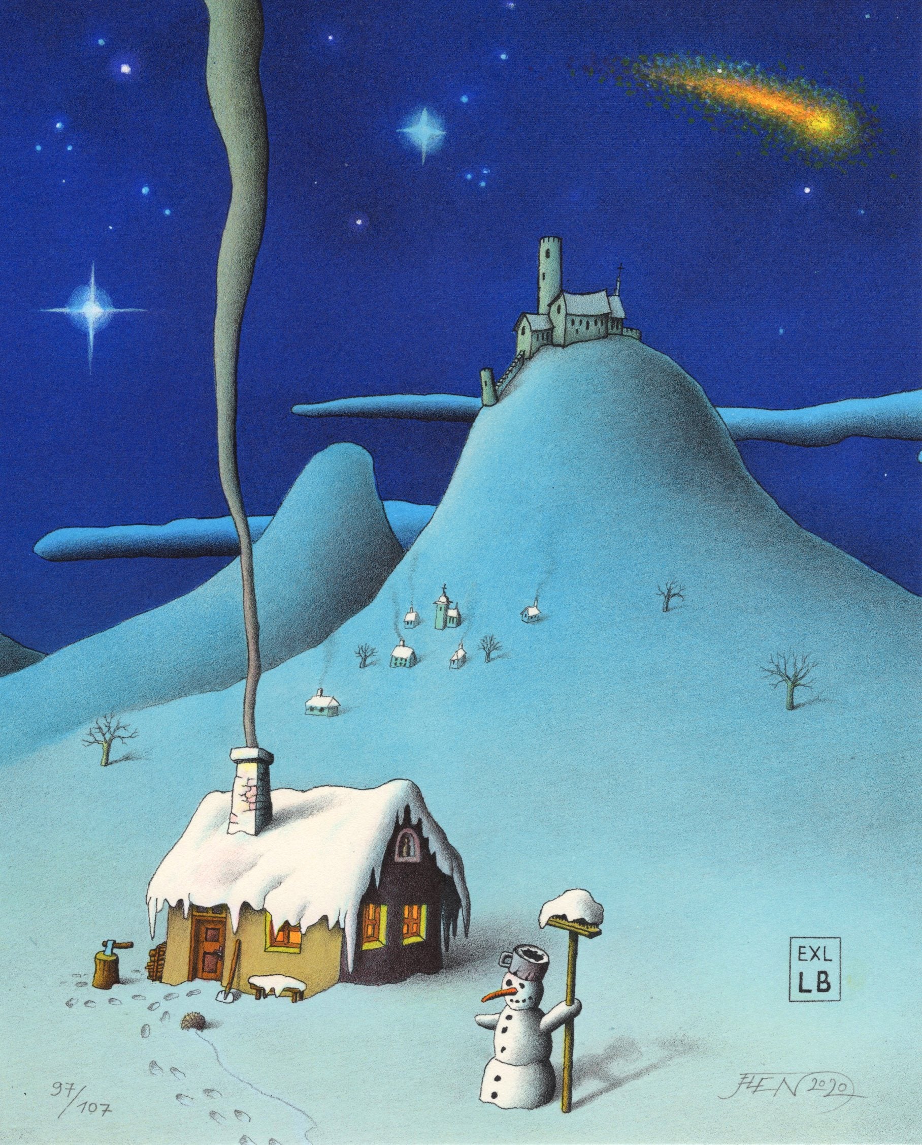 Litografie 96/107, 16x20 cm, grafický list, signováno O. Jelen. Volný grafický list - nerámováno
