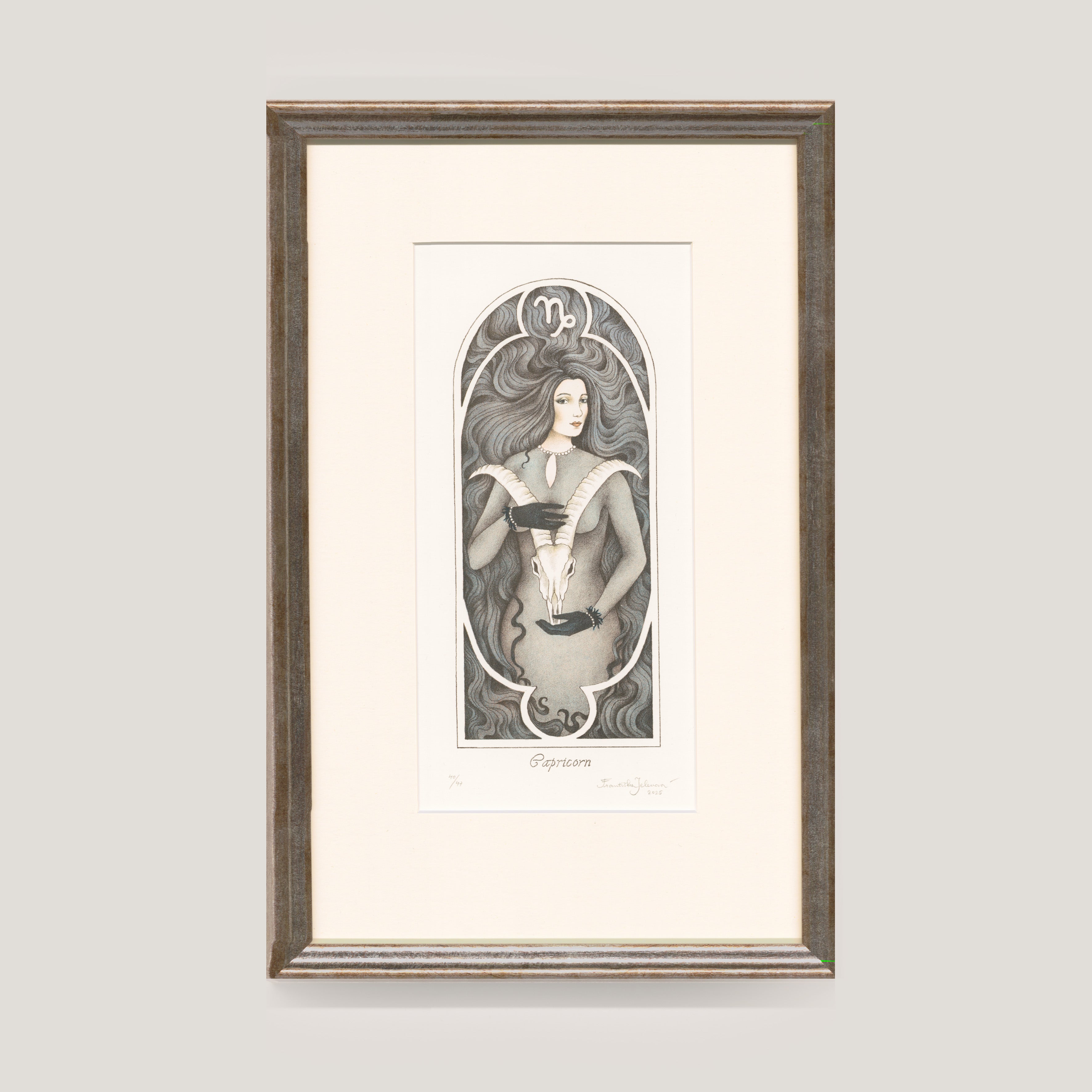 Rozměr s rámem 21x33,5 cm, grafický list 40/47, signováno Františka Jelenová, volný grafický list - nerámováno