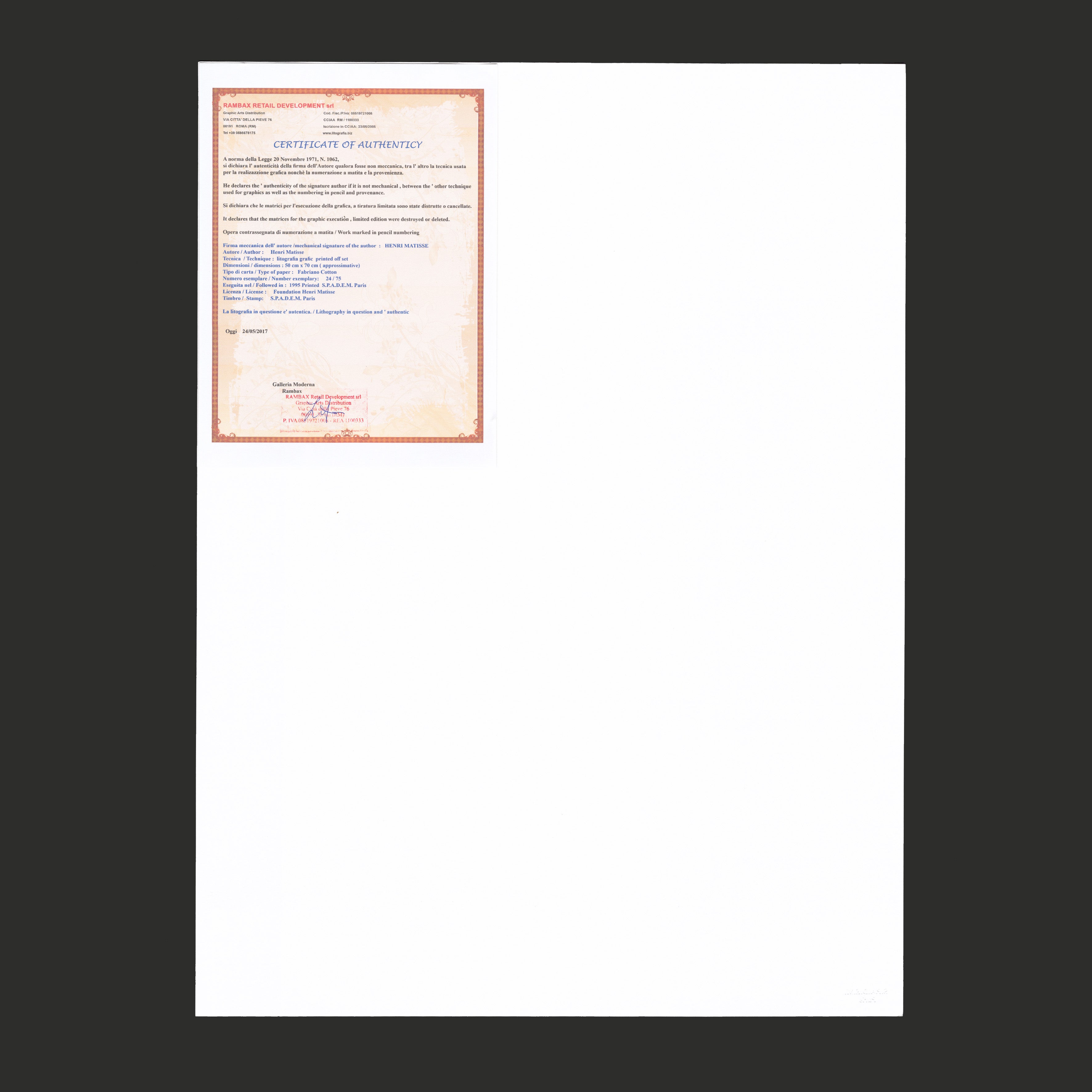 Henri-Émile-Benoit Matisse (1869 – 1954) byl francouzský grafik, sochař, scénograf a architekt. Nejznámější je však jeho malířské dílo - proslul svou prací s barvou a svým brilantním kreslířským uměním. Byl hlavní postavou uměleckého směru zvaného fauvismus. Spolu s Pablem Picassem patří k výtvarníkům, kteří nejvíce ovlivnili vývoj umění v 2. polovině 20. století.