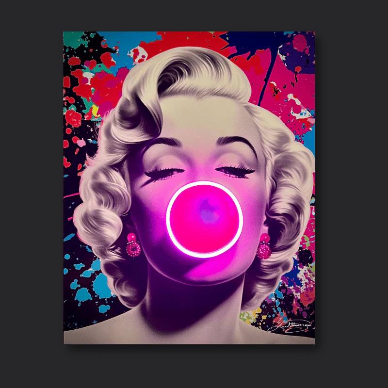 Limitovaná edice, 55x70 cm. Ručně podepsaný a číslovaný certifikát (COA) o pravosti díla na zadní straně. 12V neonový LED efekt, 2m dlouhý, průhledný kabel, 12V napájecí zdroj, EU zástrčka. Součástí každého obrazu je háček pro zavěšení, zadní dřevěný rám, pryskyřicový nátěr, ruční LED stmívač.