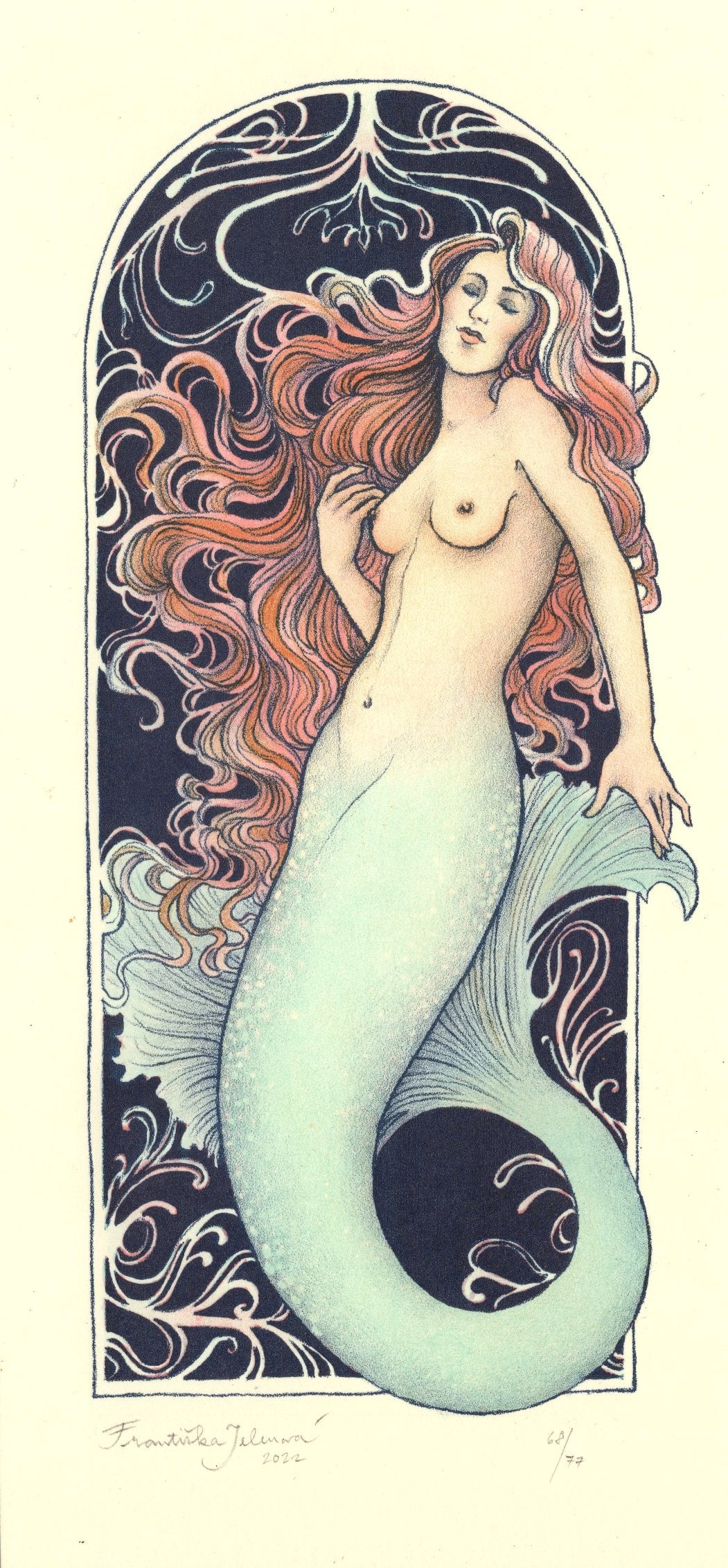 Litografie 9,4x20,1 cm, grafický list 63/77, signováno Františka Jelenová, volný grafický list - nerámováno