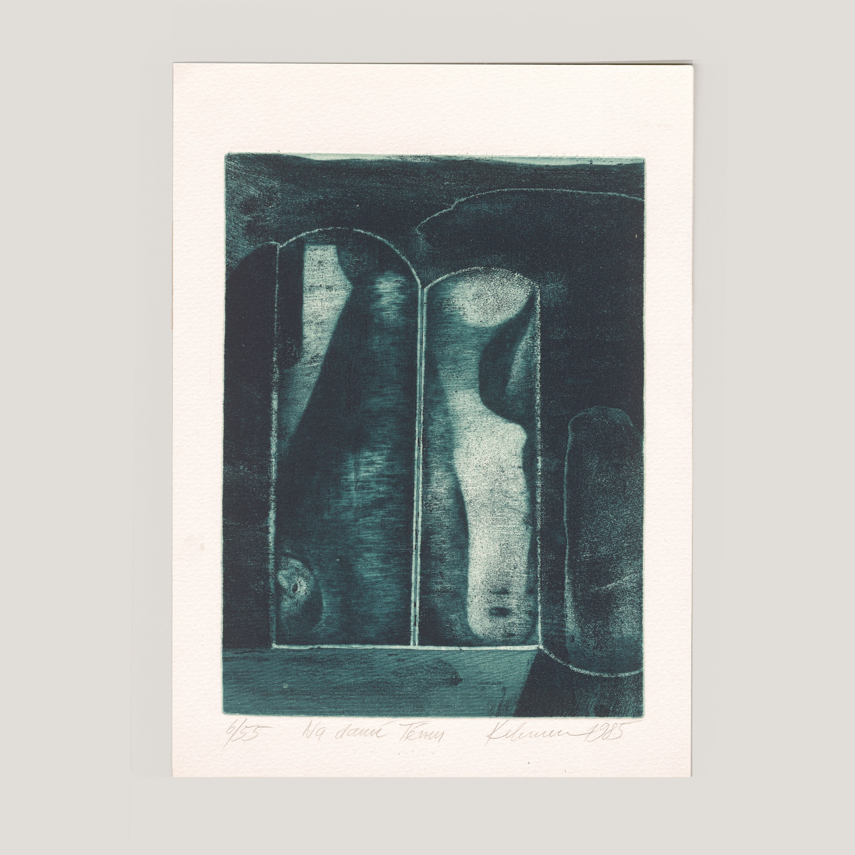 Lep, suchá jehla, mezzotinta. Formát tiskové plochy: 17 x 23,2 cm, formát papíru: 21 x 29,7 cm, číslováno 6/55, signováno tužkou Kelemen 1985, volný list.