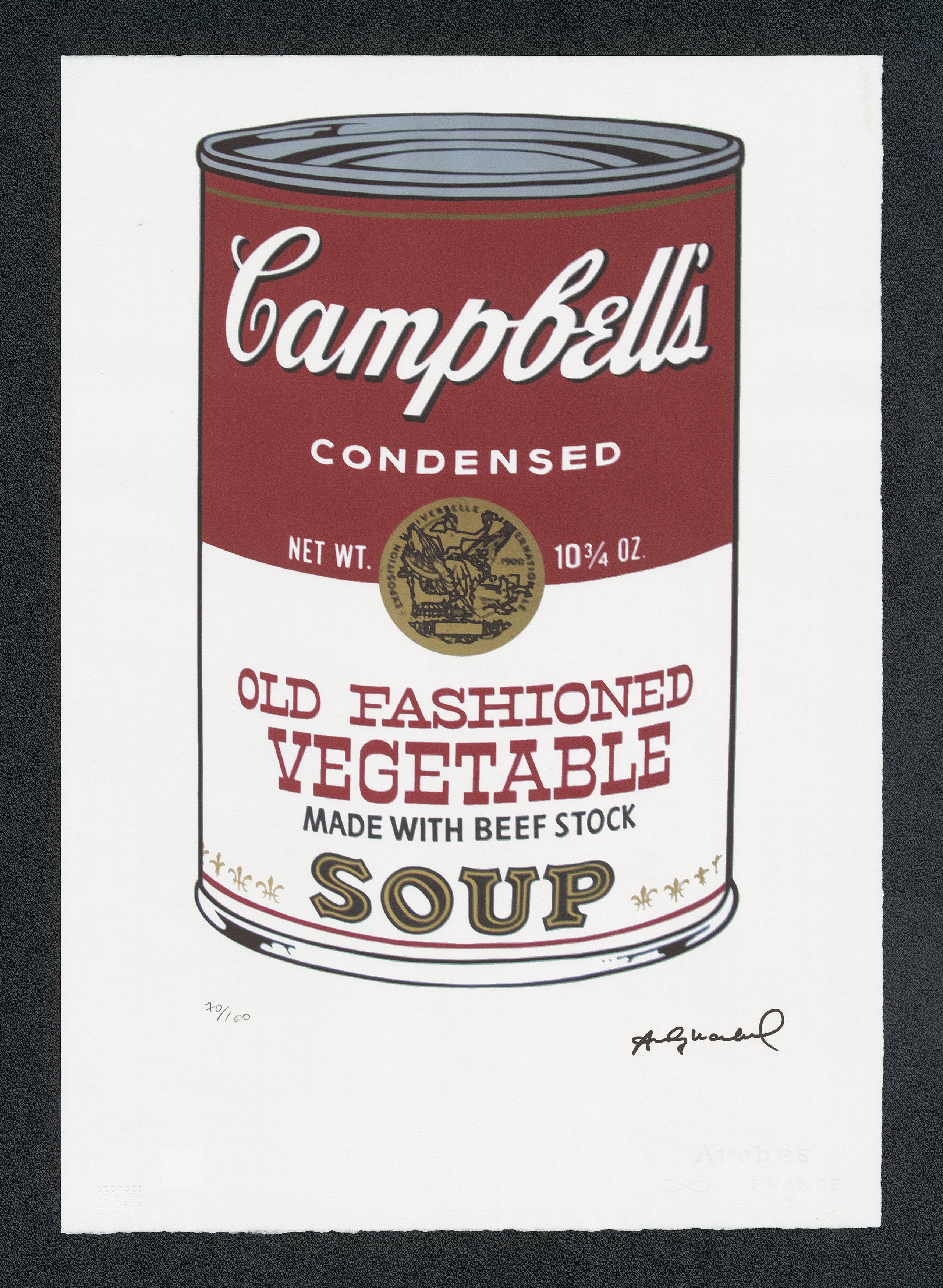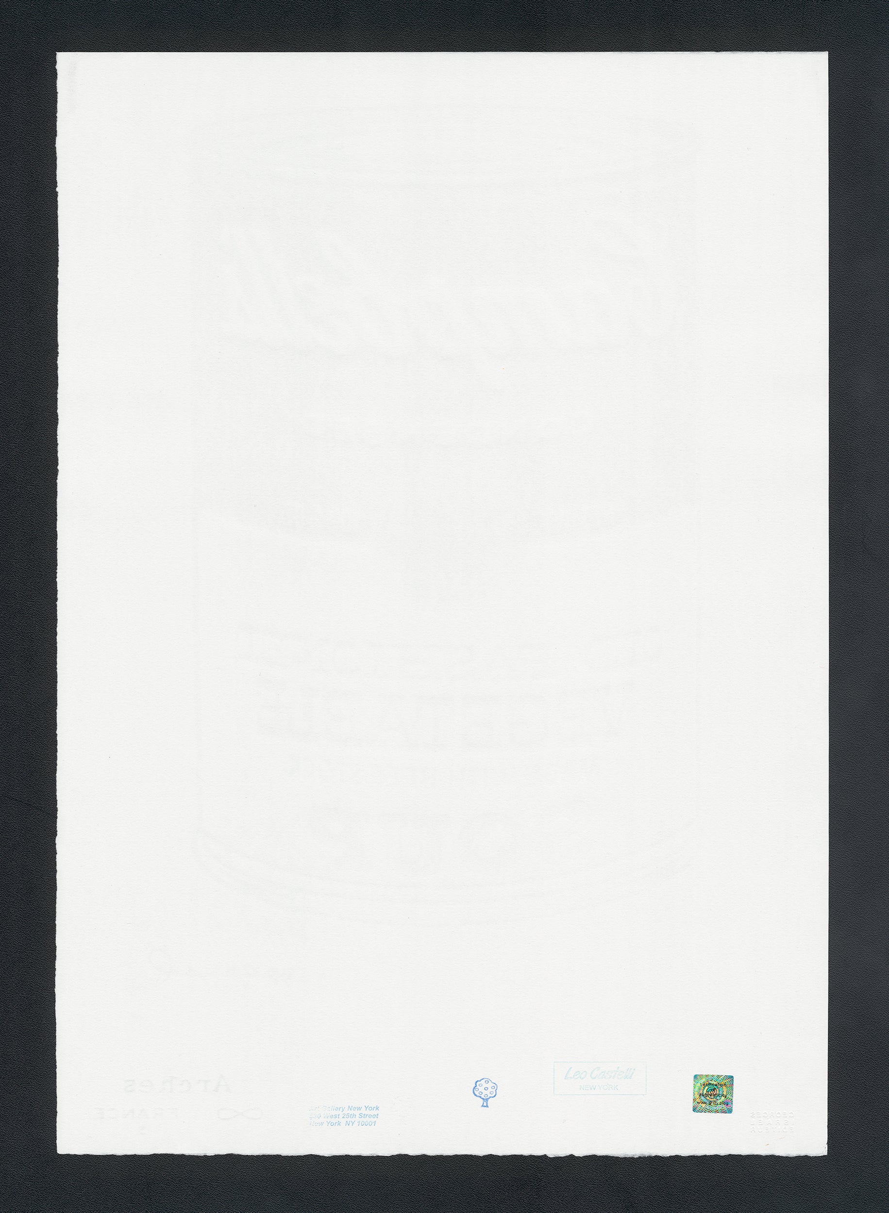 Certifikovaný grafický list, 38 x 56 cm, 70/100. Certifikát, slepotisk © ANDY WARHOL, ruční papír Fabriano Privilege. Signováno vpravo dole Andy Warhol. Na zadní straně razítka: ANDY WARHOL Factory.