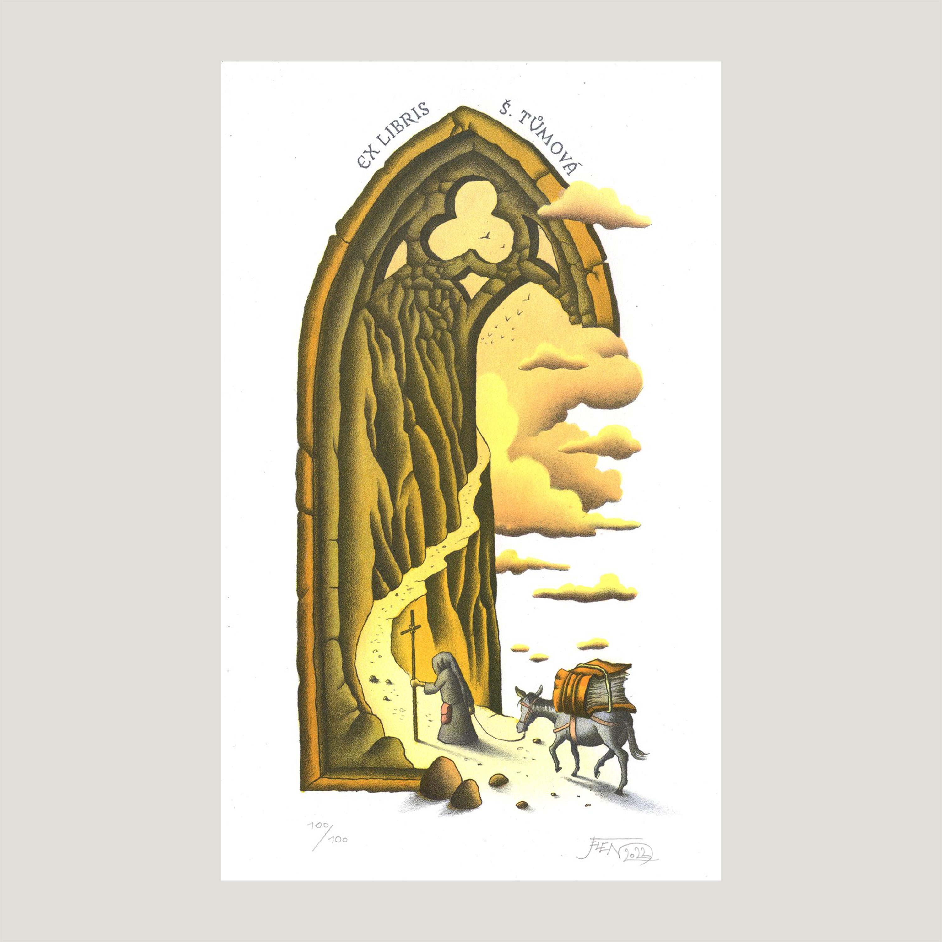 Litografie 92/100, 12,2x19,8 cm, grafický list, signováno O. Jelen. Volný grafický list - nerámováno