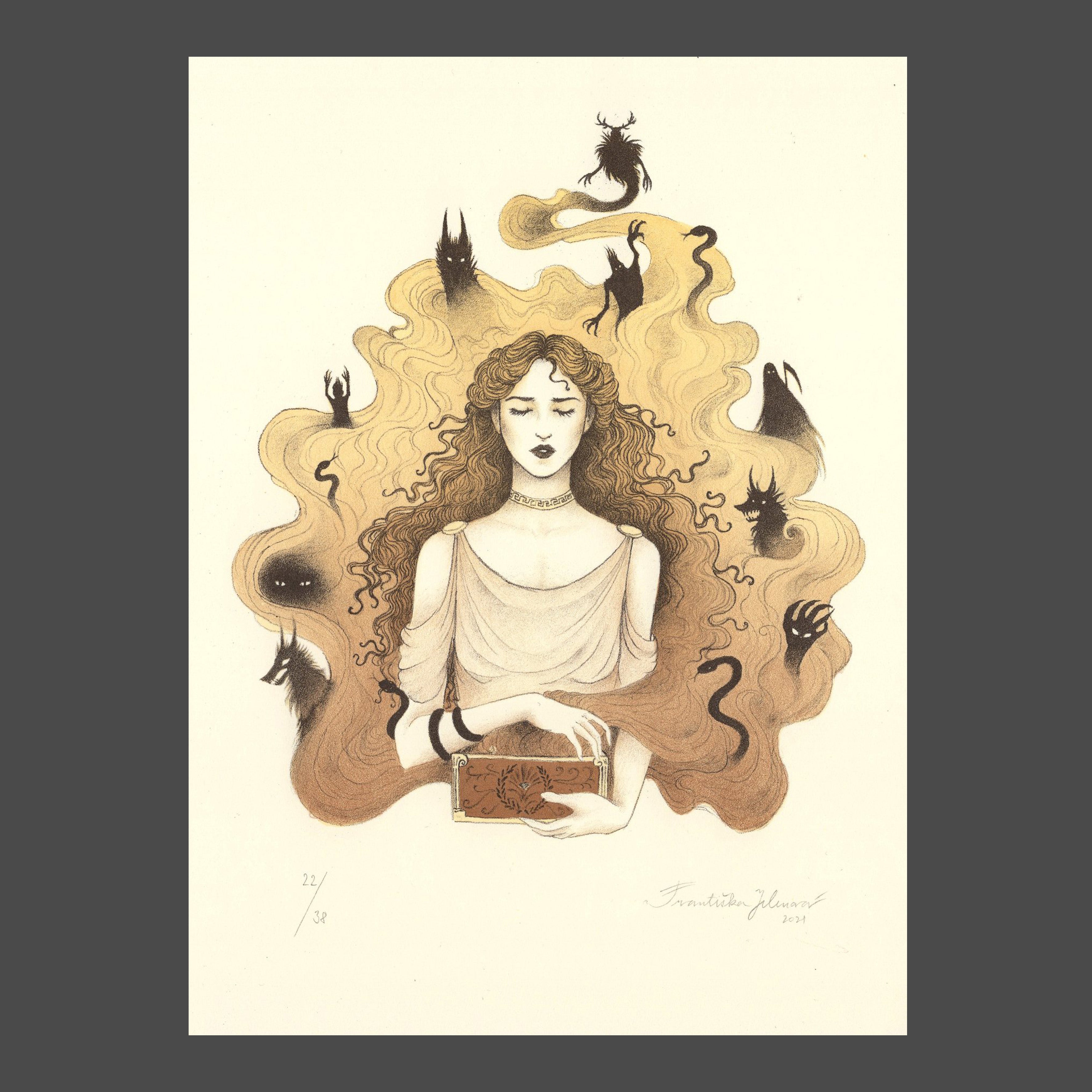 Litografie 14,3x19,5 cm, grafický list 27/38, signováno Františka Jelenová, volný grafický list - nerámováno